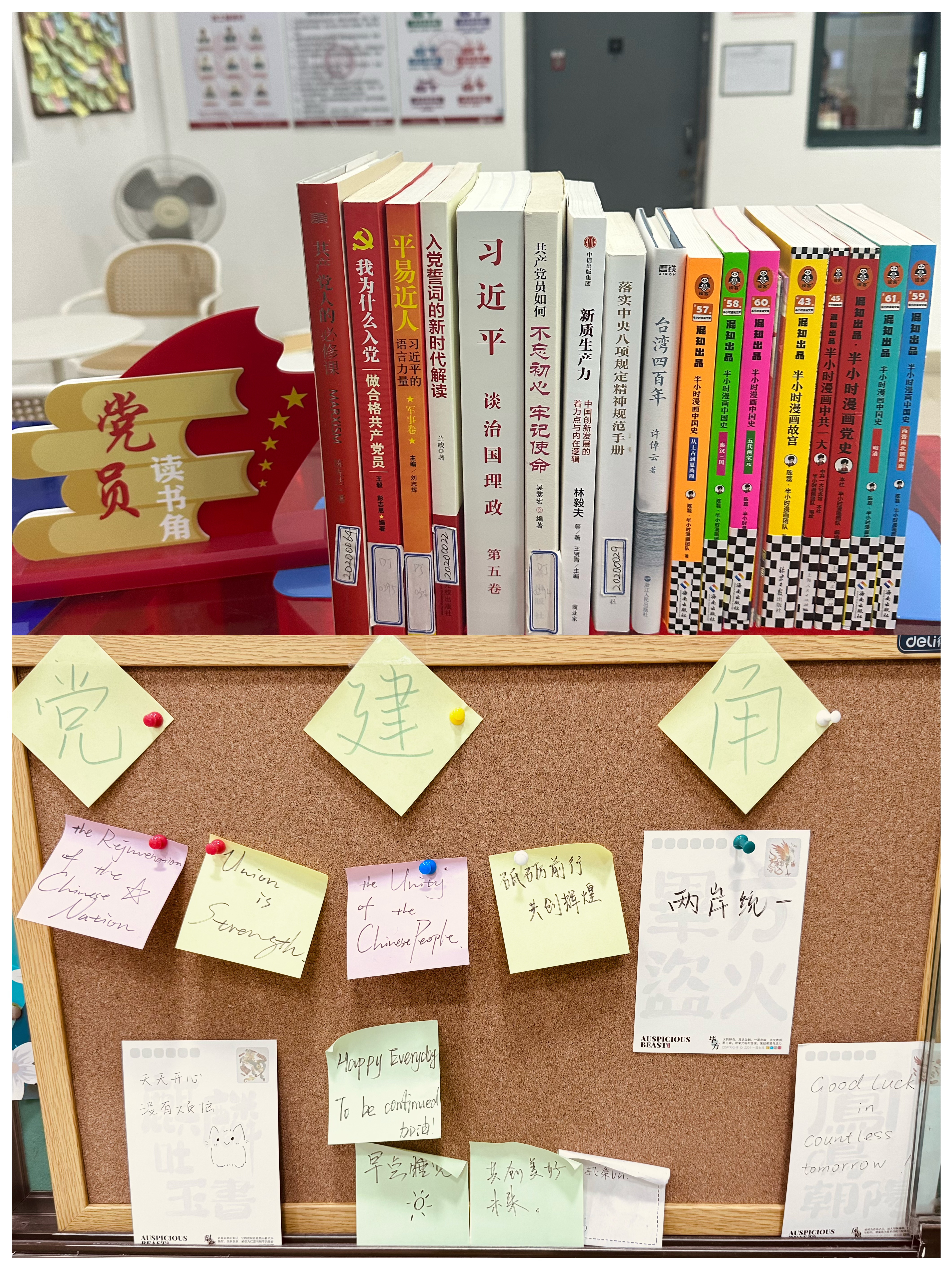 “多语党建角”成为亮点之一。同学们用中文和外语书写对党的热爱与信念,展现新时代青年在国际化视野下的思想追求与政治觉悟,体现了外语专业学生的表达特色。