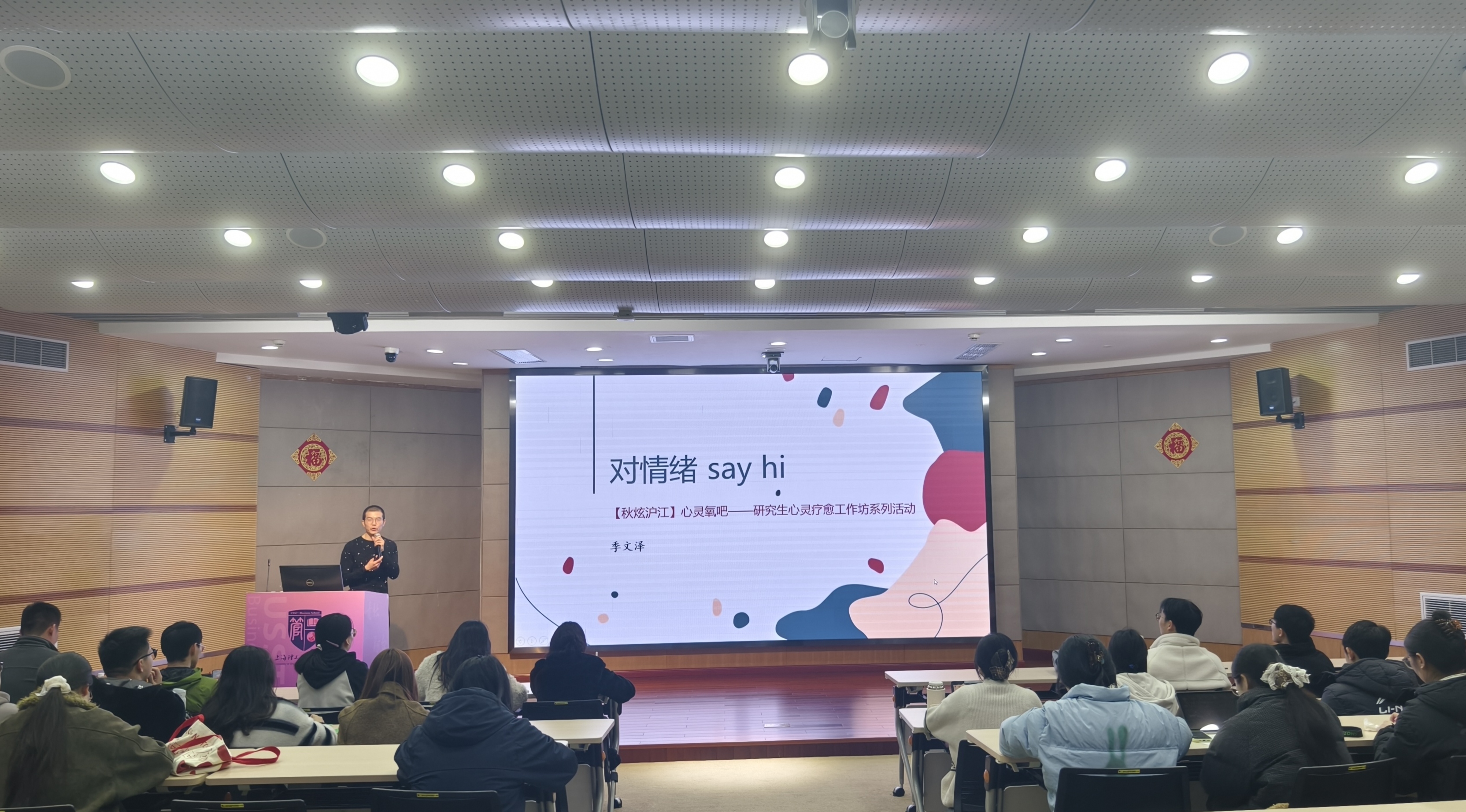 12月3日,心理专家季文泽老师主讲的《对情绪say hi!》在温暖专注的氛围中展开。季文泽以贴近研究生日常的焦虑与压力场景切入,通过生动的比喻和互动练习,引导同学们学习识别情绪信号、掌握情绪调节的实用技巧。讲座不仅是知识的传递,更是一场安全的心灵探索。同学们在老师的带领下,尝试以友善的态度接纳自我,理解情绪背后的需求,从而获得更平和的内在力量。现场互动积极,不少同学表示,学会了“与情绪做朋友”,是研究生阶段一门至关重要的必修课。