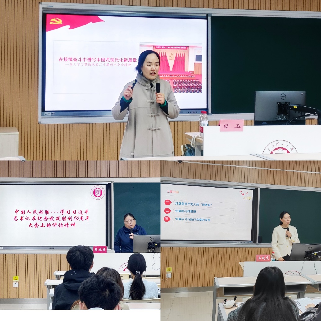 在理论教学阶段,学院党委副书记李晓庆、学院关工委常务副主任陈瑞芳、马克思主义学院副教授史玉分别围绕“党章学习教育”、抗战历史与民族精神、党的二十届四中全会精神解读等主题作辅导报告。李晓庆系统解读党章核心要义与党员权利义务、纪律规范,引导学员筑牢思想根基;陈瑞芳结合习近平总书记重要讲话精神,引领学员重温抗战历史、感悟精神伟力;史玉紧扣理科专业特色,阐释党中央的新思想新部署。