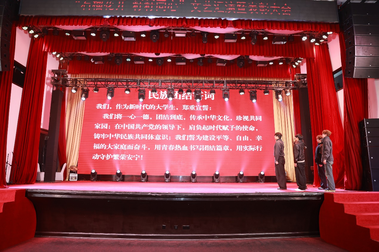 为深入践行民族团结进步理念,传承中华优秀传统文化,凝聚各民族师生同心向未来的青春力量,12月15日晚,上海理工大学“石榴花开 籽籽同心”民族团结文艺汇演暨表彰大会在大礼堂举行。各民族师生齐聚一堂,在歌舞与交流中共赴文化交融之约,共绘民族团结同心画卷。新疆驻上海市教育协调组、杨浦区民族团结进步协会有关负责同志应邀出席,学校学生工作部(处)、统战部、教务处、团委和相关学院负责人、师生代表以及长白新村街道代表共同参加活动,在交流互动中凝聚团结共识、共话民族情谊。