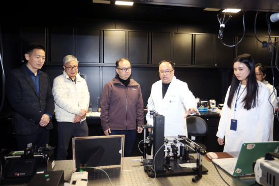 会前,李国林一行参观机器智能研究院、光子芯片研究院。学校机器智能研究院执行院长李清都、光子芯片研究院执行副院长张启明分别陪同参观并就相关平台建设、科研进展及成果应用等方面作了详细介绍。