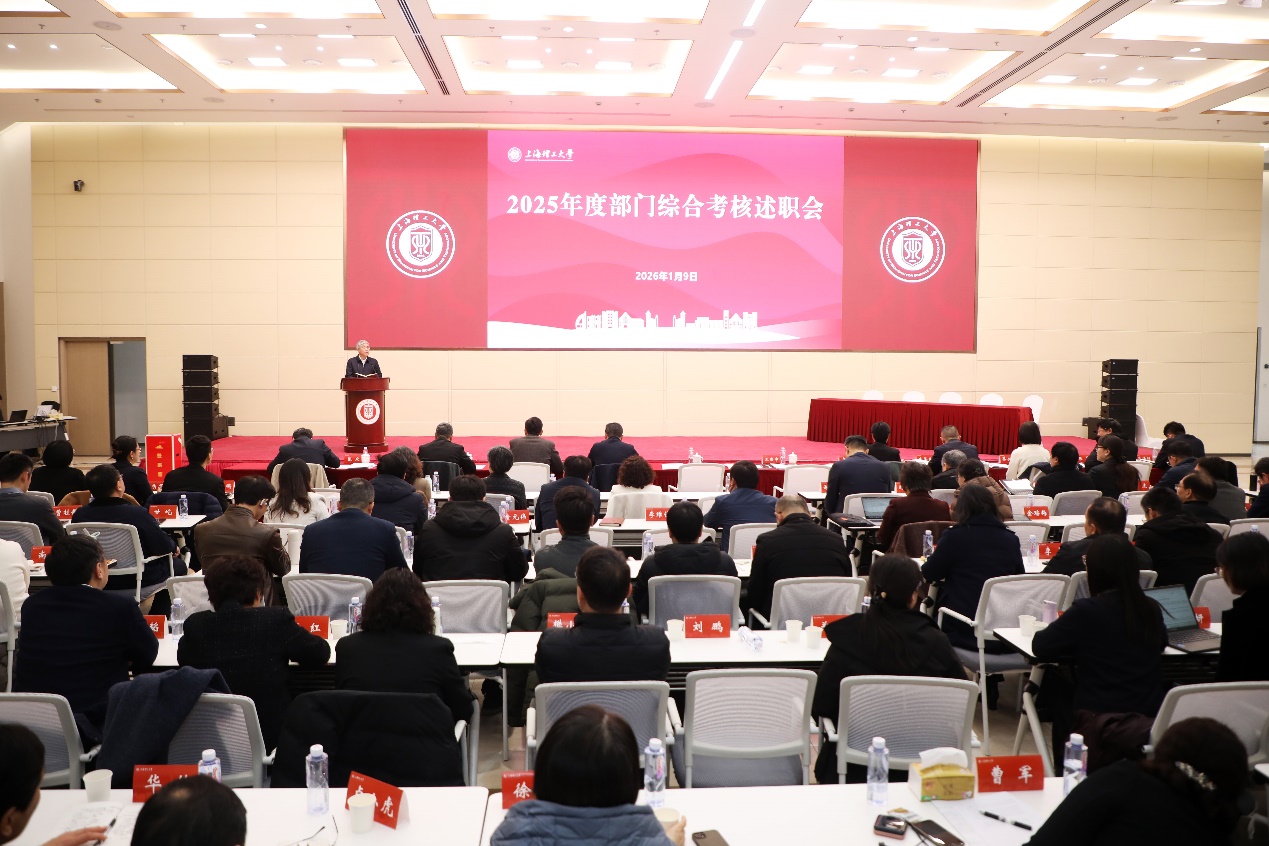 1月9日,上海理工大学2025年度部门综合考核述职大会在学生发展中心多功能厅举行。全体校领导、中层干部、师生代表参加,大会由副校长张众主持。