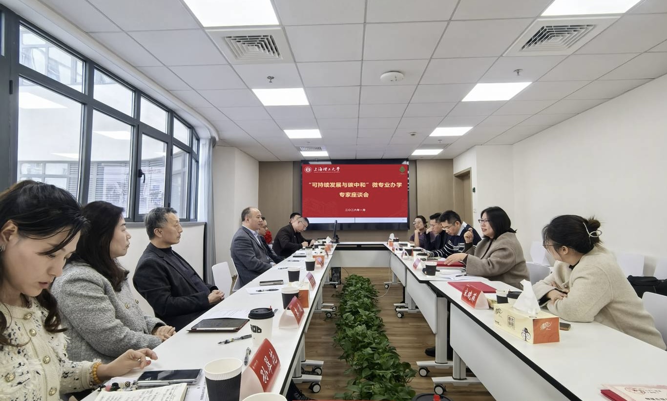 1月16日上午,“可持续发展与碳中和”微专业建设专家研讨会在我校举办。来自上海市能效中心、上海安悦节能技术有限公司、上海宝碳新能源环保科技有限公司、上海绿翼产品环境声明促进中心等企事业单位的专家代表,与我校教务处、继续教育学院、能源与动力工程学院相关负责人及教师代表共同参会,围绕微专业建设与人才培养展开深入交流。