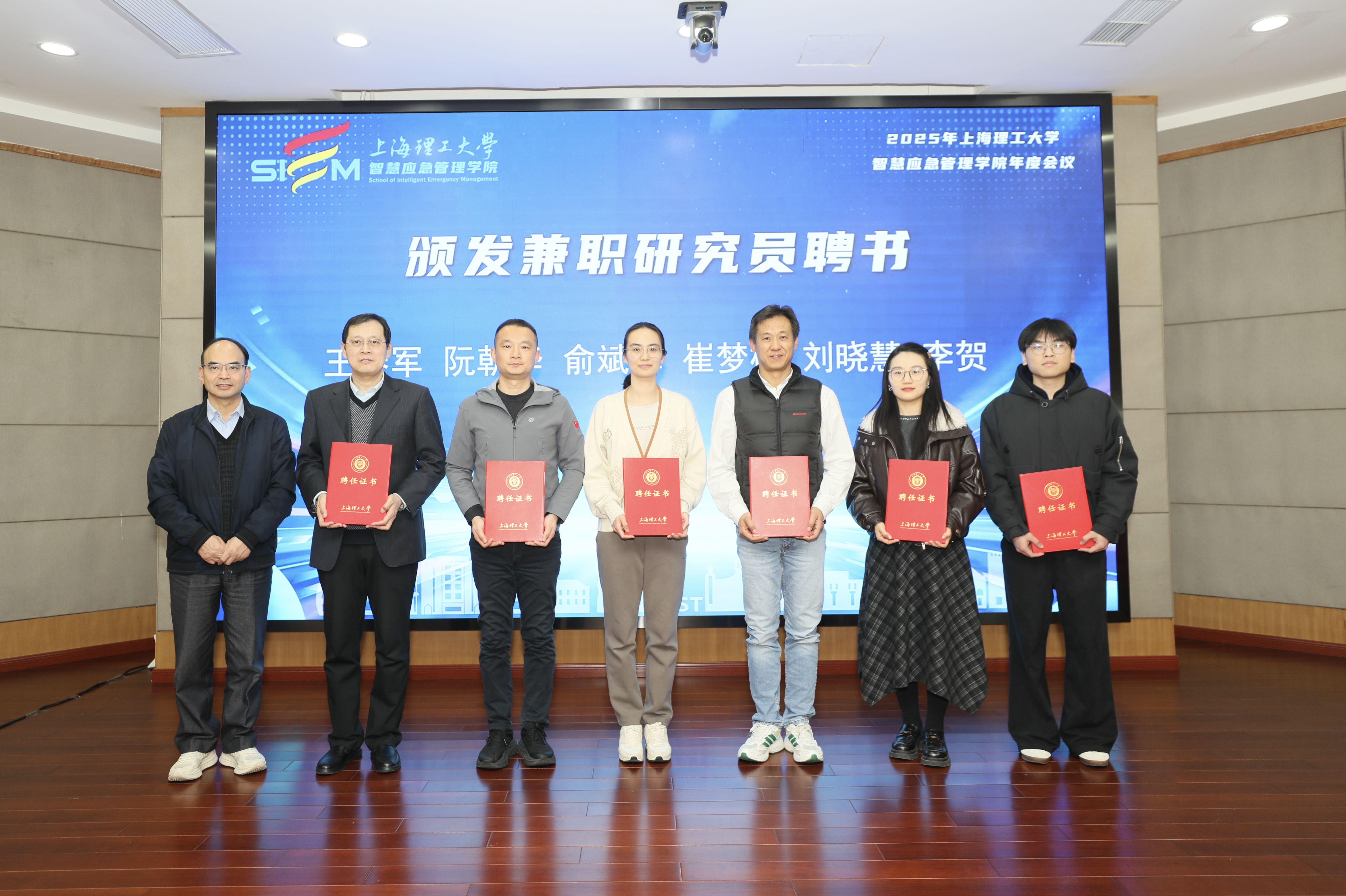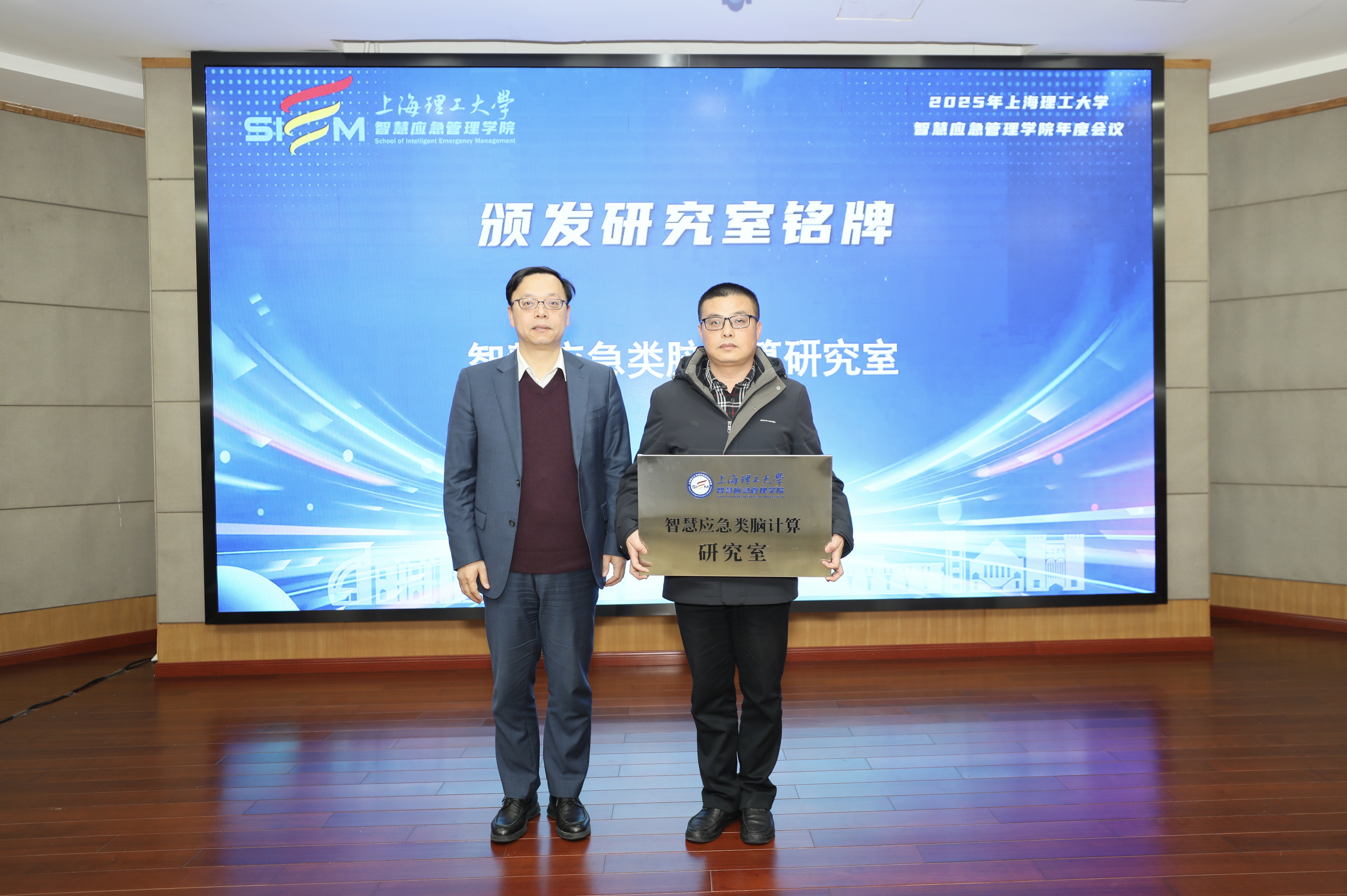 桂余才为上海市应急管理局重点实验室主任和副主任颁发聘书;赵宁为获得学院“培育课题项目”的兼职研究员颁发荣誉证书;桂余才为新聘任的兼职研究员颁发聘书;赵来军为学院“智慧应急类脑计算研究室”授予铭牌。