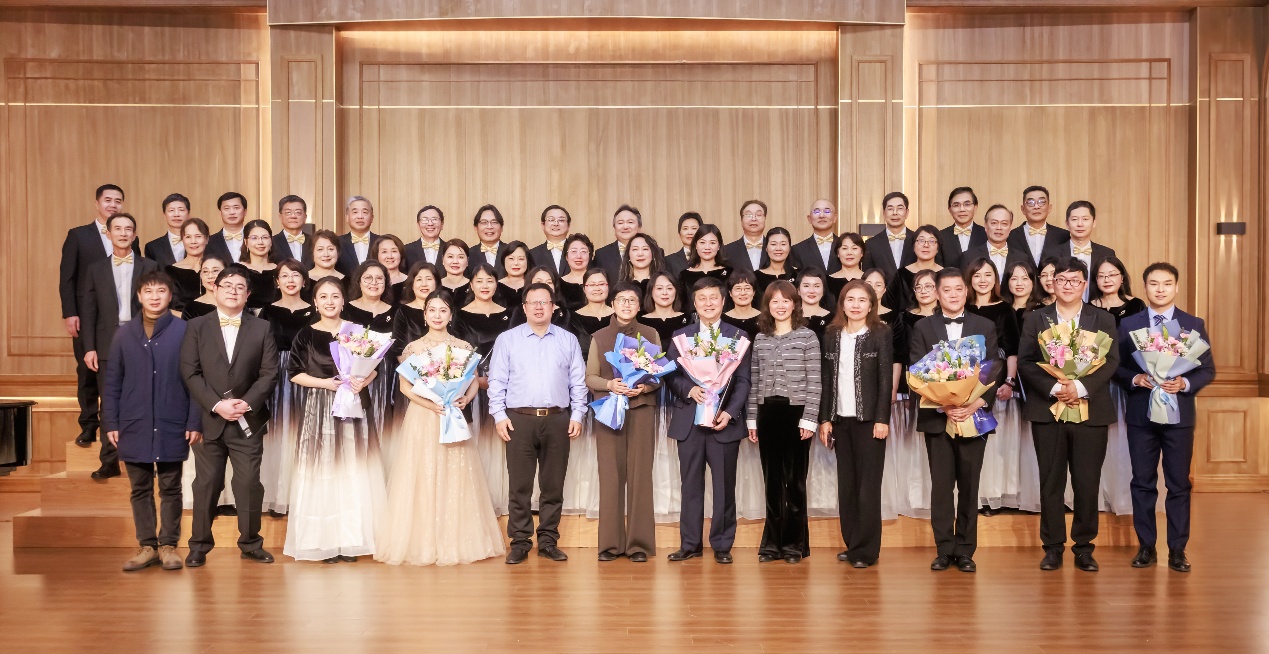 合唱团成立于2020年9月,由原上海理工大学校长丁晓东担任团长,常任指挥方勇执棒。五年来,合唱团深耕美育实践沃土,积极投身多项市级展演活动并斩获荣誉,已然成为上海教工文化建设领域的一张亮眼名片。音乐会现场,《遇见》《春日偶成》《萱草花》等经典曲目轮番上演,混声合唱、独唱、二重唱等多元艺术形式交替呈现。既有融合传统戏韵与现代合唱之美的《流水恋歌》,也有饱含家国情怀的《如愿》,充分展现出教育工作者深厚的艺术素养与昂扬向上的精神风貌。