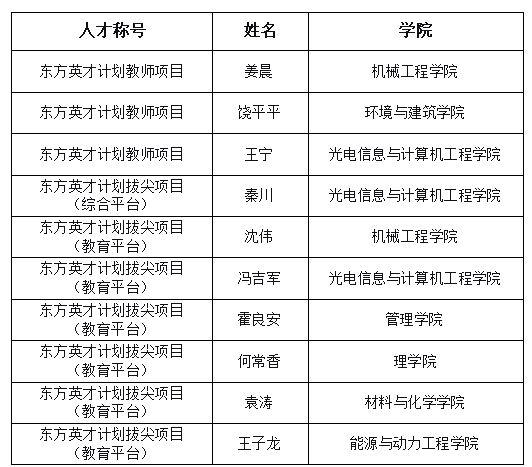 上海市东方英才计划是贯彻落实市委、市政府《关于新时代上海实施人才引领发展战略的若干意见》的重要举措,旨在加速推进上海市高层次人才队伍建设。其中,教师项目遴选支持具有创新能力和实践经验的教师,鼓励其积极参与教育教学改革和创新,提高教育教学质量;拔尖项目遴选支持在创新研究中承担核心任务的拔尖人才;青年项目遴选支持在专业领域崭露头角,具有突出发展潜力的青年人才。2025年度我校3人获批东方英才计划教师项目,7人获批东方英才拔尖项目。