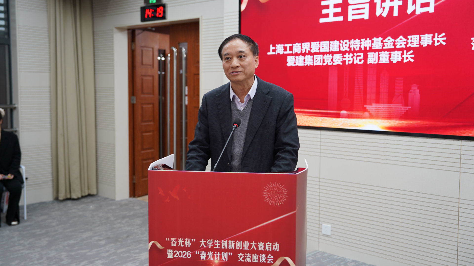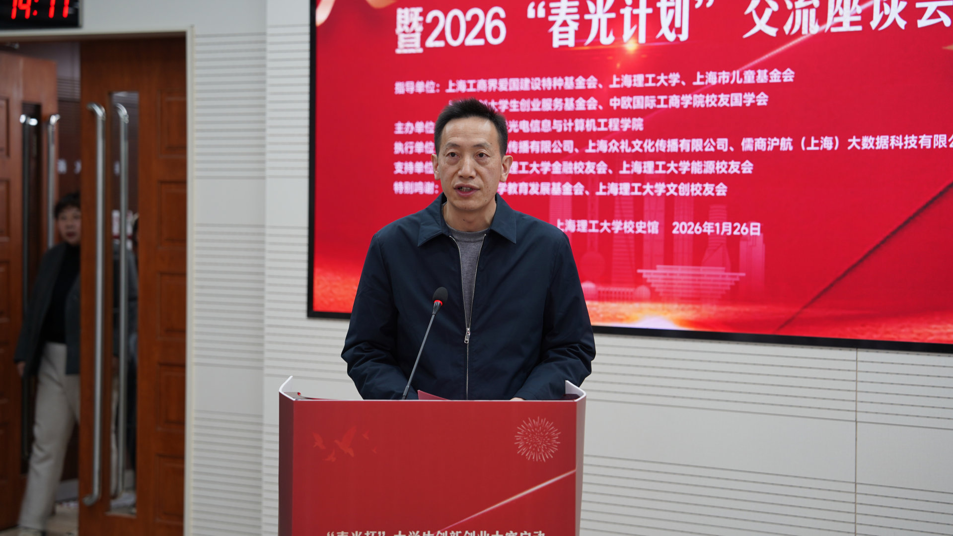 1月26日下午,“春光杯”大学生创新创业大赛启动仪式暨2026“春光计划”交流座谈会在我校隆重举行。本次活动由上海工商界爱国建设特种基金会、上海理工大学、上海市儿童基金会、上海青创大学生创业服务基金会及中欧国际工商学院校友国学会共同指导,上理工光电学院主办,旨在汇聚社会各界力量,共商青年创新创业大计,服务国家人才战略,培育新质生产力。
