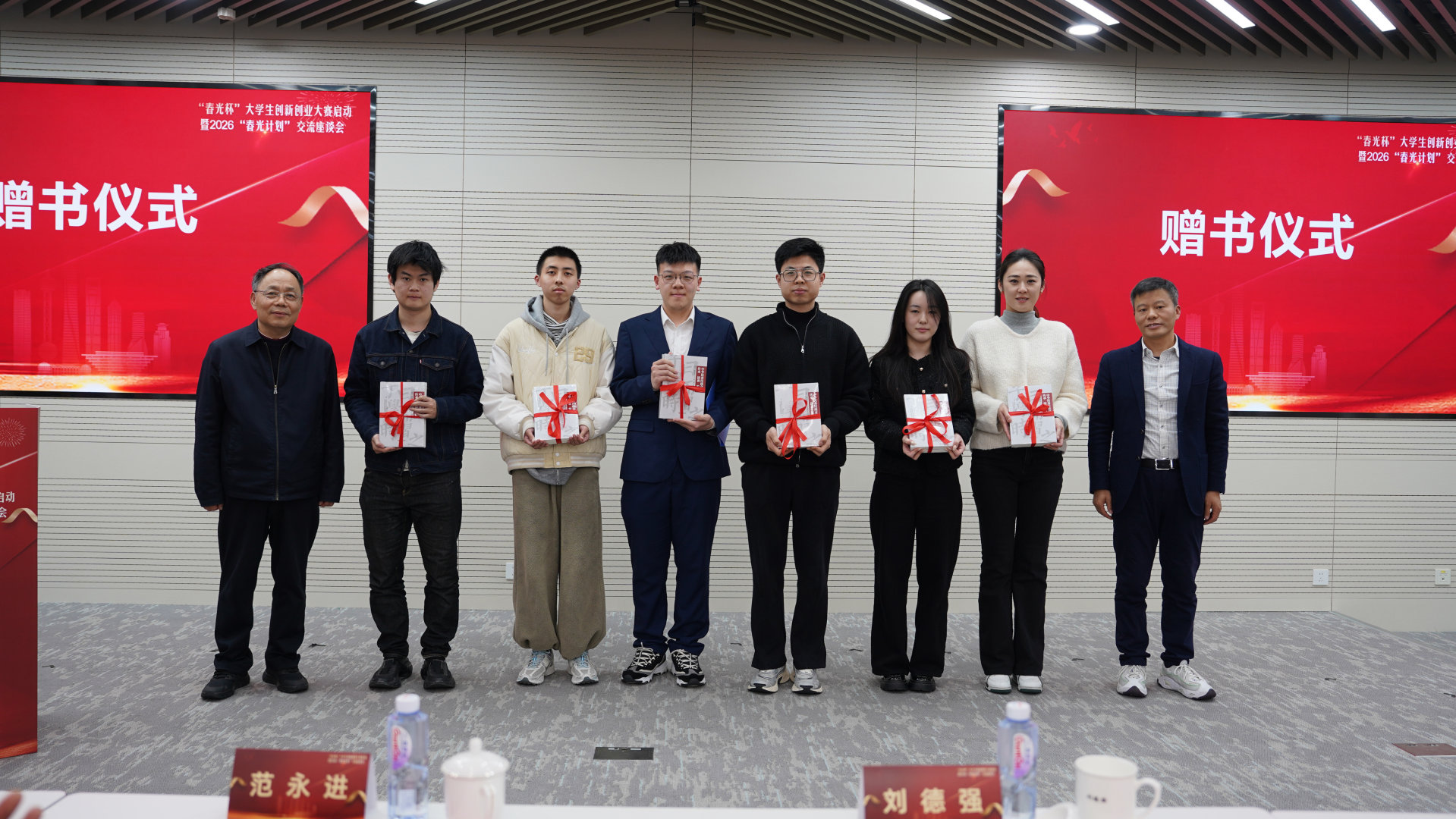 活动现场,陈国华与上海国晟信息科技有限公司董事长吴兵向来自中国科学技术大学、上海交通大学、上海理工大学、上海海事大学、上海第二工业大学、上海南湖职业技术学院六所高校的学生代表赠送书籍,寄语青年以知识为舟、以梦想为帆,在创新浪潮中勇毅前行。