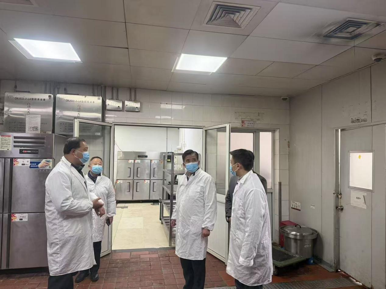 检查组在第五食堂后厨检查食品安全和消防工作