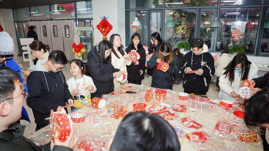 现场红灯笼高挂、福字点缀,猜灯谜、做窗花、投壶、写春联等经典项目依次铺开。学子们或凝神解谜、或巧手剪窗花、或趣味投壶互动、或挥毫写春联,将新春的美好期许凝于指尖、融于笔墨。不少国际生也主动加入,在亲身体验中探寻中国春节的文化底蕴,现场处处洋溢着团圆祥和的节日气息。