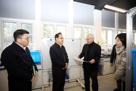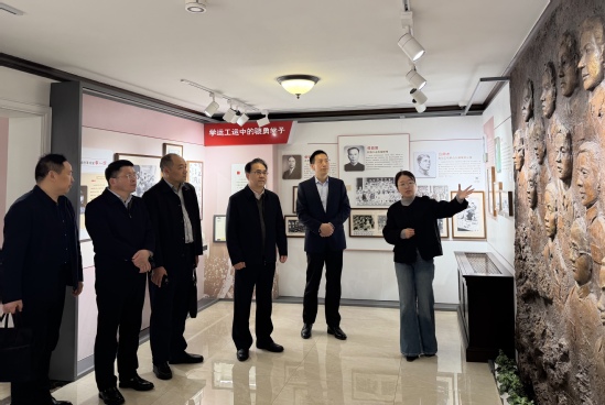 李明斌一行参观了光化学与光材料研究院实验室、刘湛恩烈士故居红色文化主题馆等。