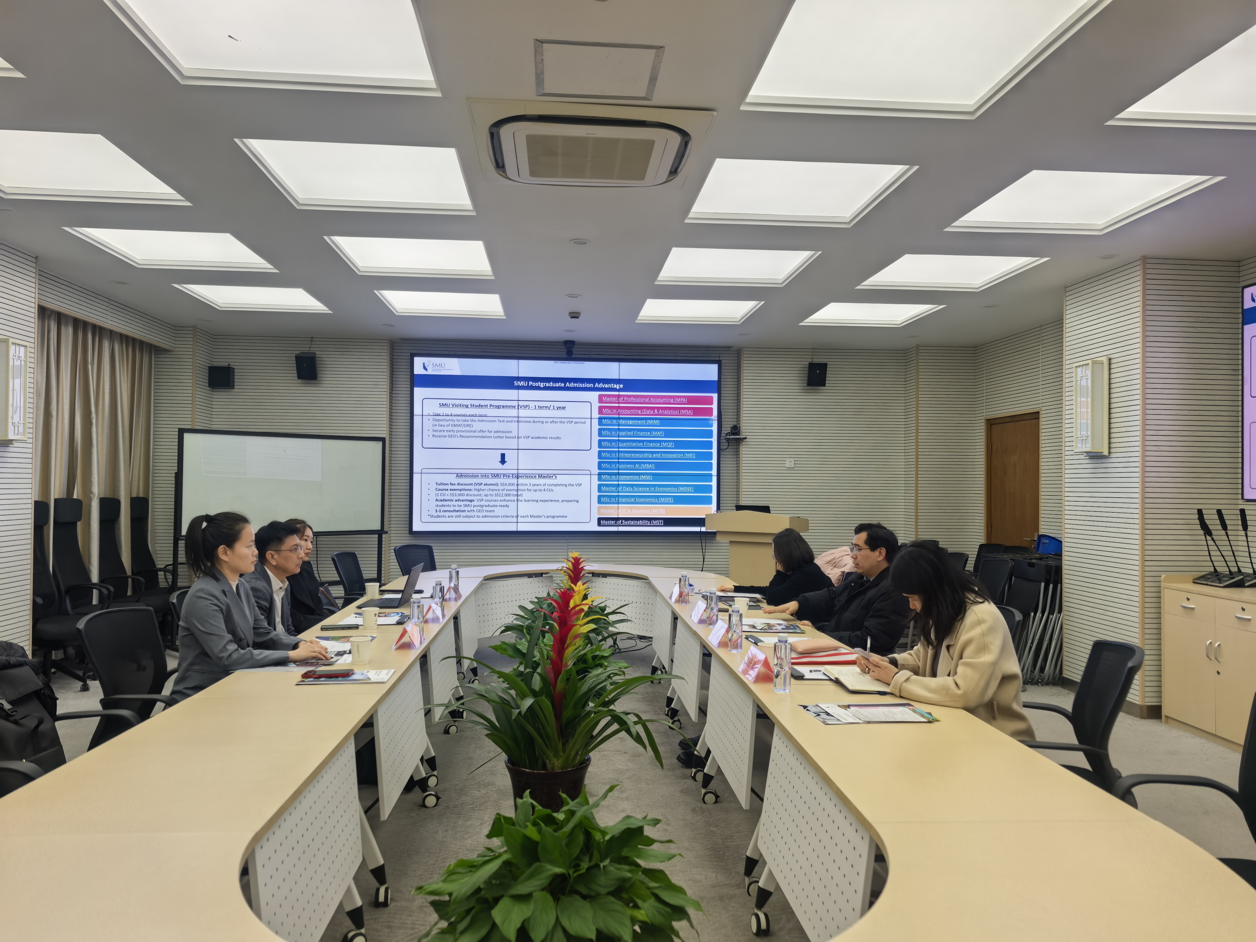 双方围绕MOU协议签署、学科与课程设置、学生培养模式、毕业生就业前景及行业发展趋势等方面展开了热烈讨论。此次会谈进一步推动了两校的合作,双方期望通过持续引入国际优质教育资源,深化在师生长短期交流、联合培养项目等方面的合作,实现优势互补、互利共赢。