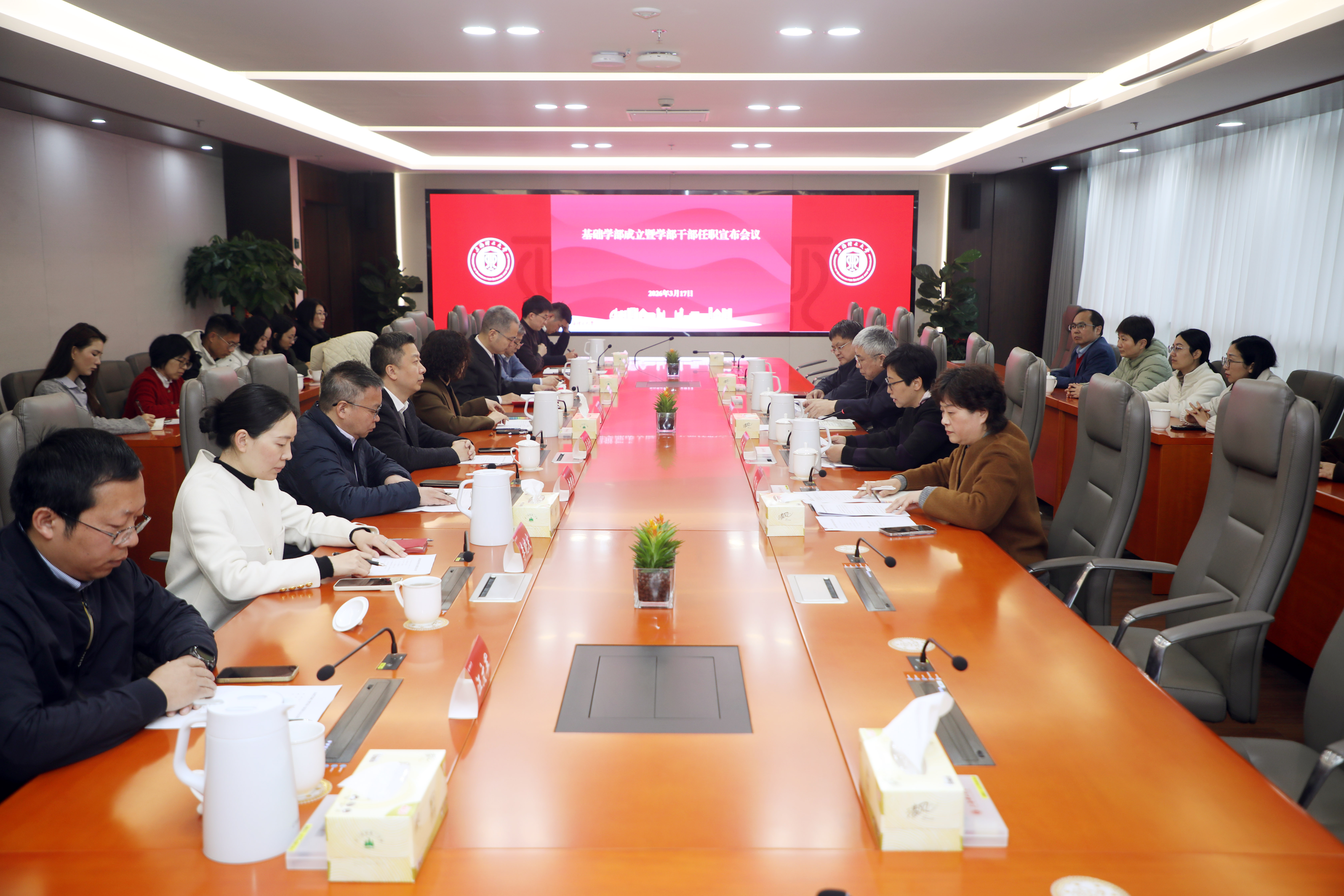 3月17日上午,学校召开基础学部成立暨学部干部任职宣布会议。基础学部由原基础学院、理学院撤并组成,是学校优化办学布局、提升办学实力的重要举措。校党委书记王凌宇,党委常委、副校长张众,党委组织部部长孙红出席大会,原基础学院、理学院领导班子成员、内设机构负责人及各党支部书记参会。会议由校党委副书记贺莉主持。