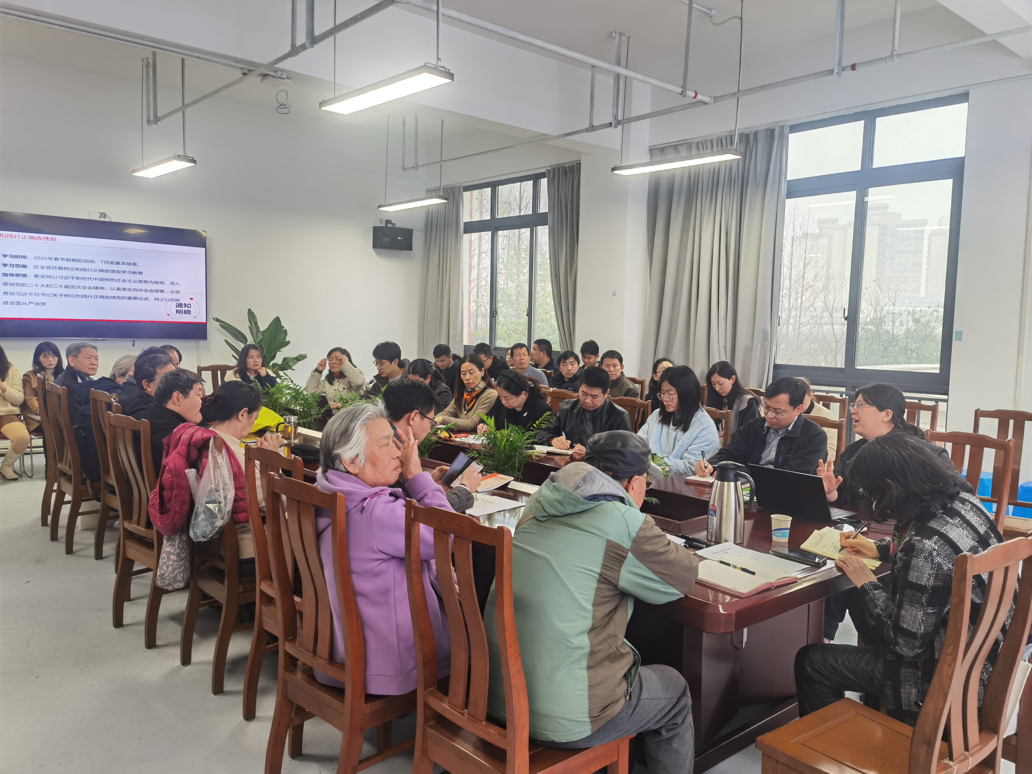 3月17日上午,离退休党委下辖学院退休第二党支部与环境与建筑学院师生党支部联合开展树立和践行正确政绩观联组学习。本次活动紧扣学习教育要求,融合理论学习、工作交流、民主评议、计划研讨等多项议程开展,实现老青党员思想碰撞、经验传承与工作共进,环建学院班子成员、退休党员以及环建、健康、出版、继教学院关工委秘书共同参与了本次学习。