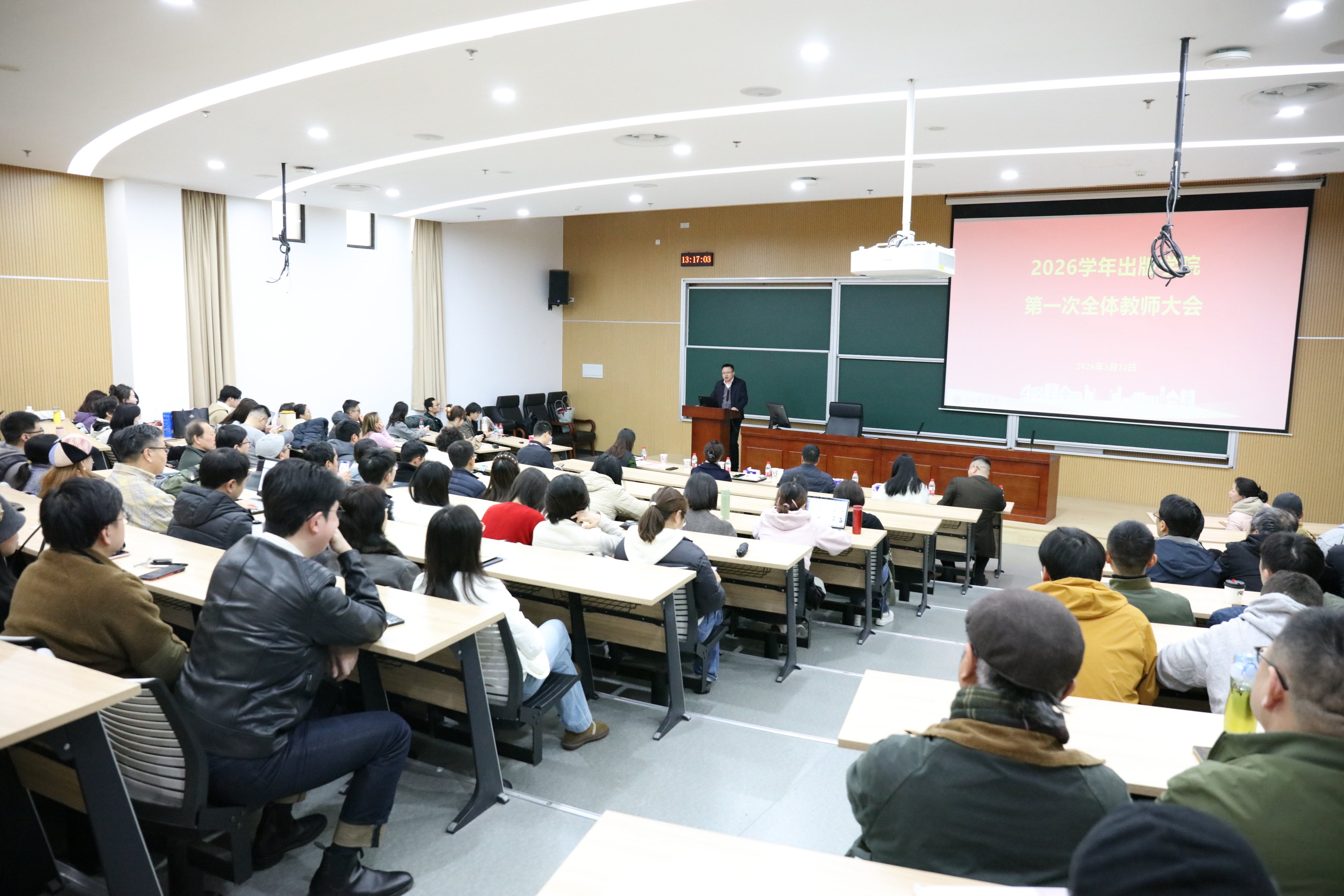 为主动适应新形势下国家对高层次人才培养的新要求,扎实推进《上海理工大学深化综合改革方案(2025-2030年)》的实施,3月24日出版学院召开全院大会暨本、研教育思想大讨论启动会。会议围绕立德树人根本任务,聚焦产教融合协同育人、学科专业动态调整、人工智能赋能教育教学等核心议题,系统部署新一轮教育思想大讨论工作,全面启动学院本科及研究生教育思想大讨论工作。上海出版印刷高等专科学校校长兼出版学院院长栗建华出席会议并讲话,学院全体教职工参加会议。