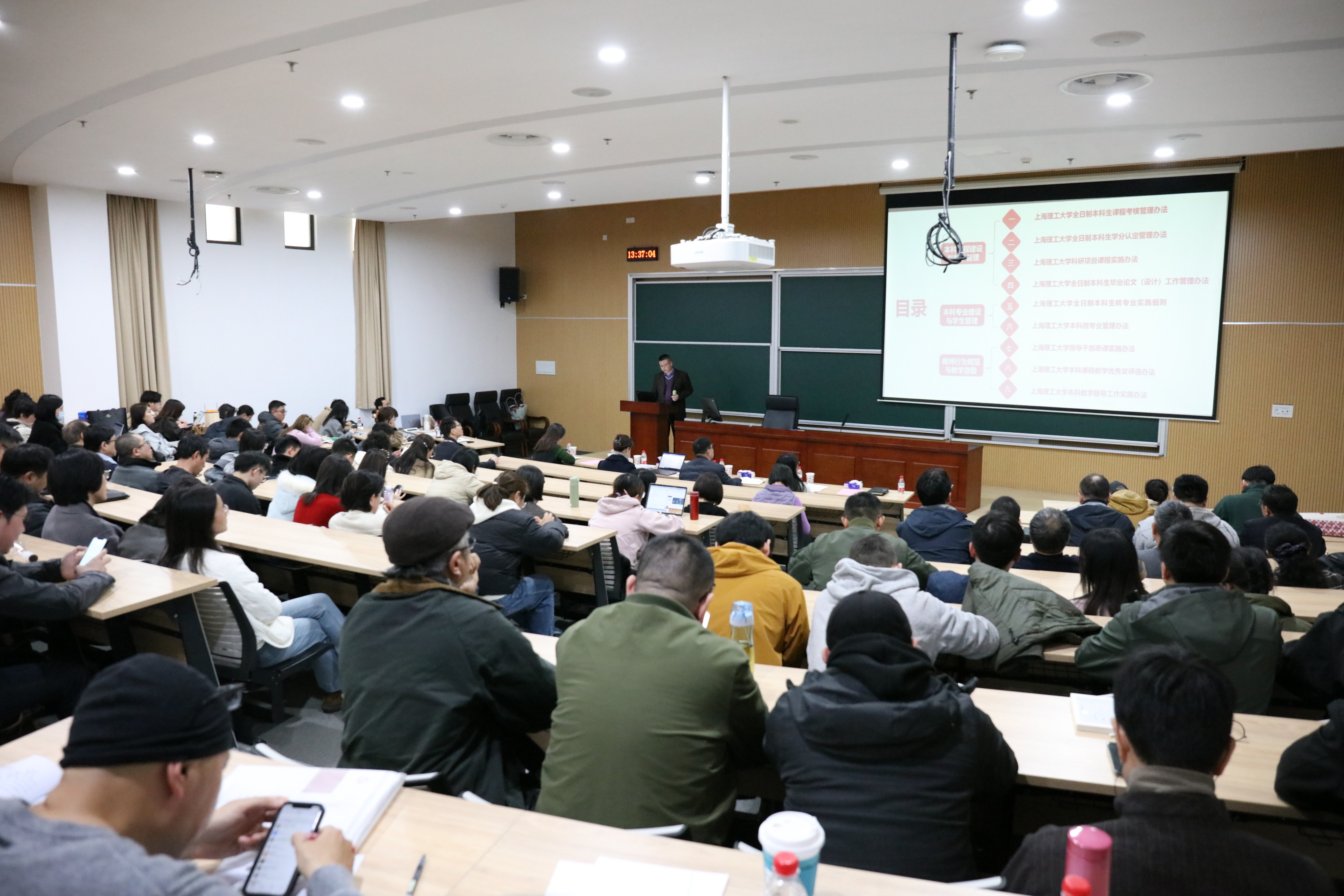 研究生院副院长黄蓓佳结合学校研究生教育思想大讨论工作部署,解读六项专题讨论方向。教务处副处长张鲁潮结合新修订的本科教学系列文件作详细介绍。他重点解读了课程考核管理、学分认定、科研项目课程、毕业论文(设计)、转专业、微专业开设、课程教学优秀奖、教学督导工作等相关工作文件,他表示,相关系列文件的修订旨在为深化本科教学改革、推动卓越工程人才培养落地见效提供制度保障。
