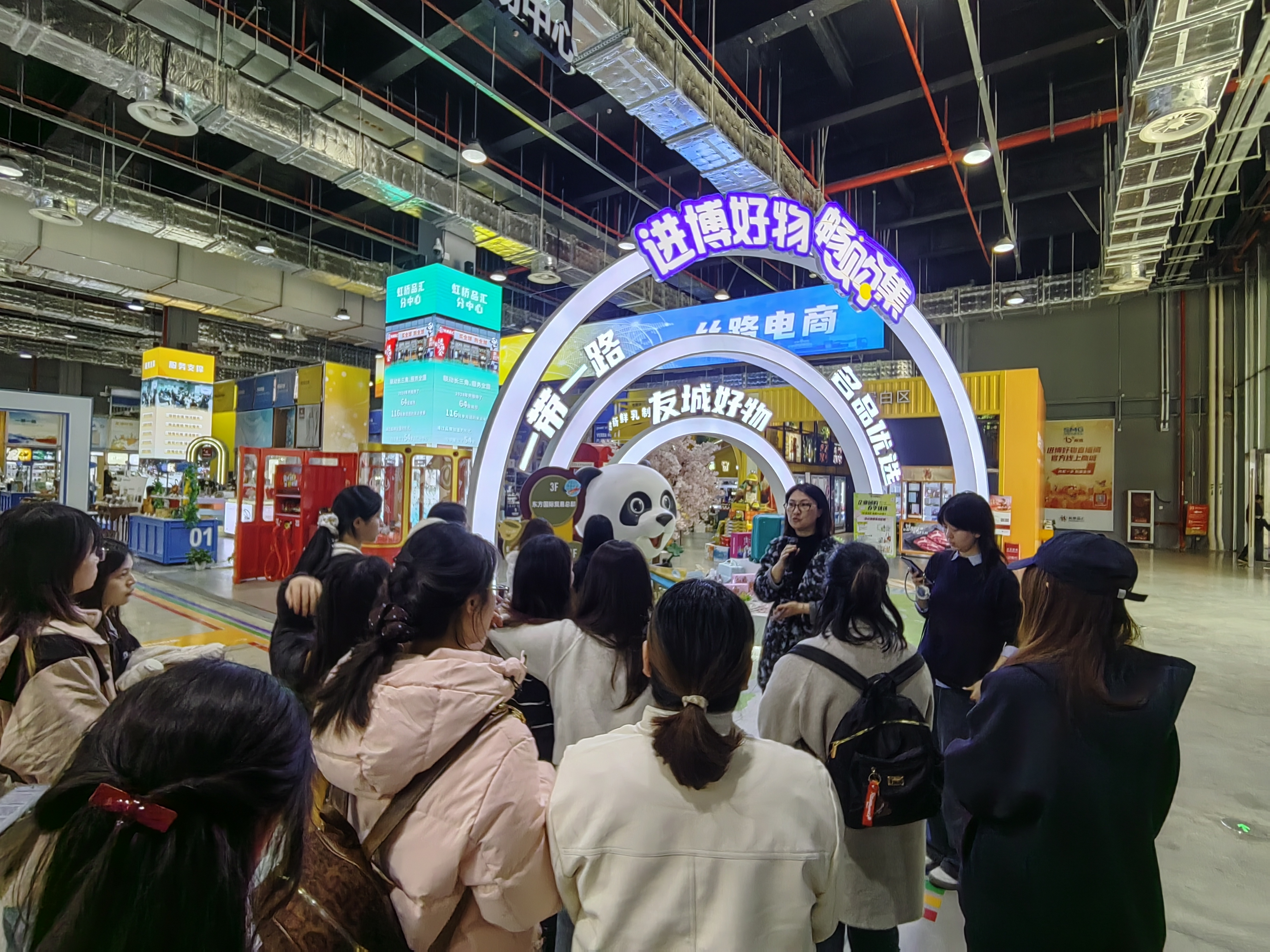 会后,在相关负责人的陪同下,师生进行了实地参观学习,系统了解了虹桥品汇作为承接和放大中国国际进口博览会溢出效应的核心平台功能,以及其打造的“6天+365天”永不落幕的展示交易模式。这为外语人才深度参与国际商贸服务、跨文化沟通提供了广阔的应用场景,进一步提升了学生们对专业价值市场化应用的理解。