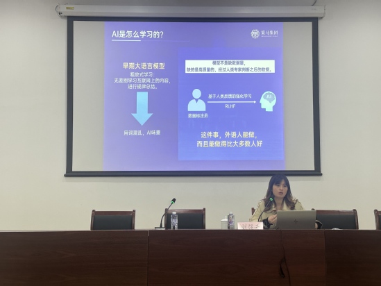 刘强云以时代发展为背景,围绕“人工智能时代外语人才的职业新通路”展开深入浅出的讲解。她结合当前技术趋势,解析了数据标注作为AI基础设施的核心价值,并详细论述了外语学习者在高阶数据标注,尤其是专家标注、跨文化判断以及法律金融等复杂任务中的独特优势。她指出,当前“十五五”规划已把高质量数据集的构建列为重要方向,作为联合国官方指定服务商,同时也是“联合国大学全球人工智能网络”的合作伙伴,策马集团目前正全面拓展高端数据标注业务,亟需具备较强语言功底与专业判别能力的外语类专业人才。她欢迎同学们加入人工智能数据产业队伍,积极响应人工智能时代的产业变革,将外语专业能力迁移至人工智能数据工程领域,成为衔接人机世界的桥梁。