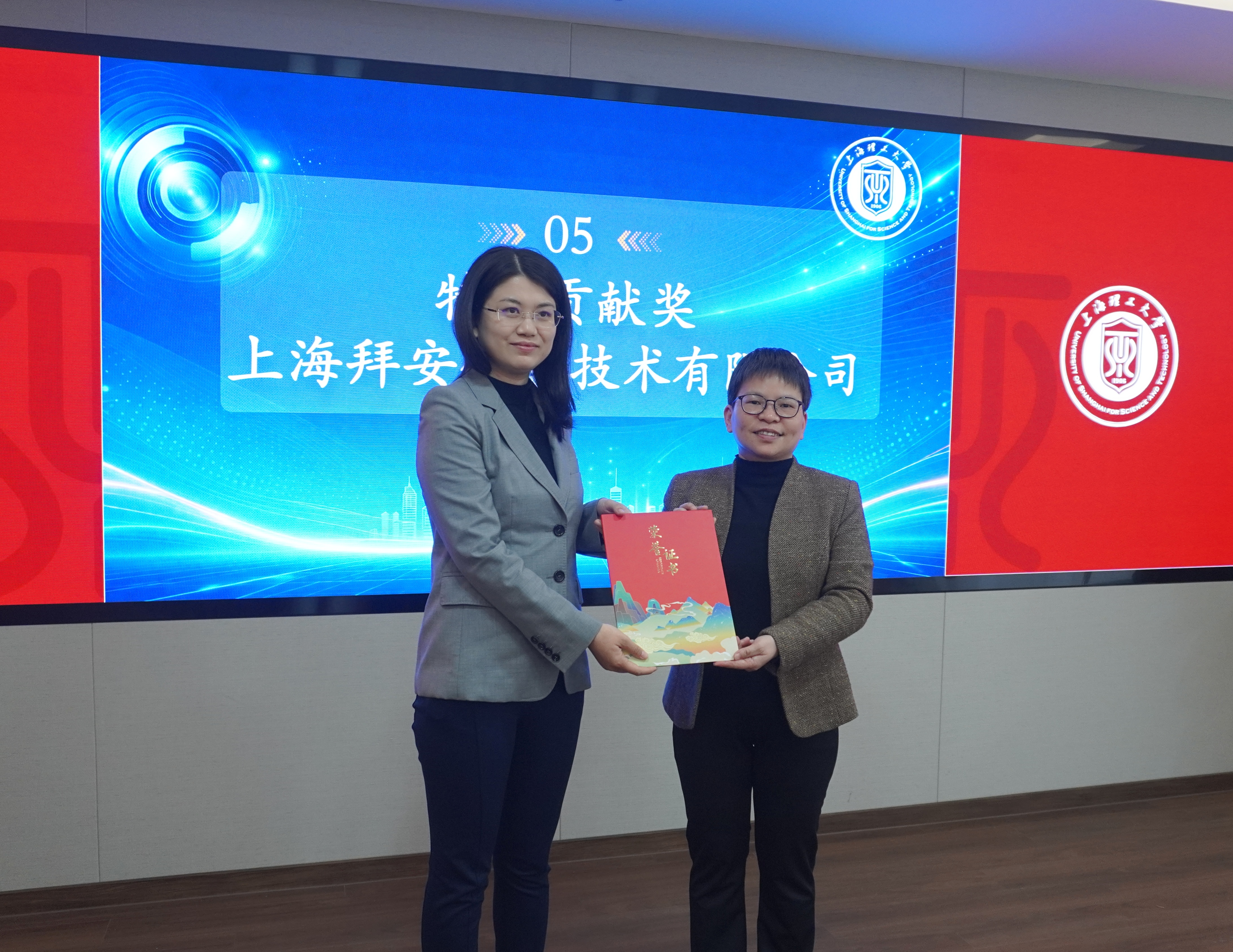 会议期间举行了颁奖仪式。全国大学生光电设计竞赛委员会林远芳副秘书长为上海拜安传感技术有限公司颁发“特别贡献奖”。全国大学生光电设计竞赛东部区竞赛委员会主任郑继红教授为上海工程技术大学数理与统计学院颁发“优秀承办单位”奖,以表彰相关单位在2025第十三届东部区赛事组织与支持中的突出表现。
