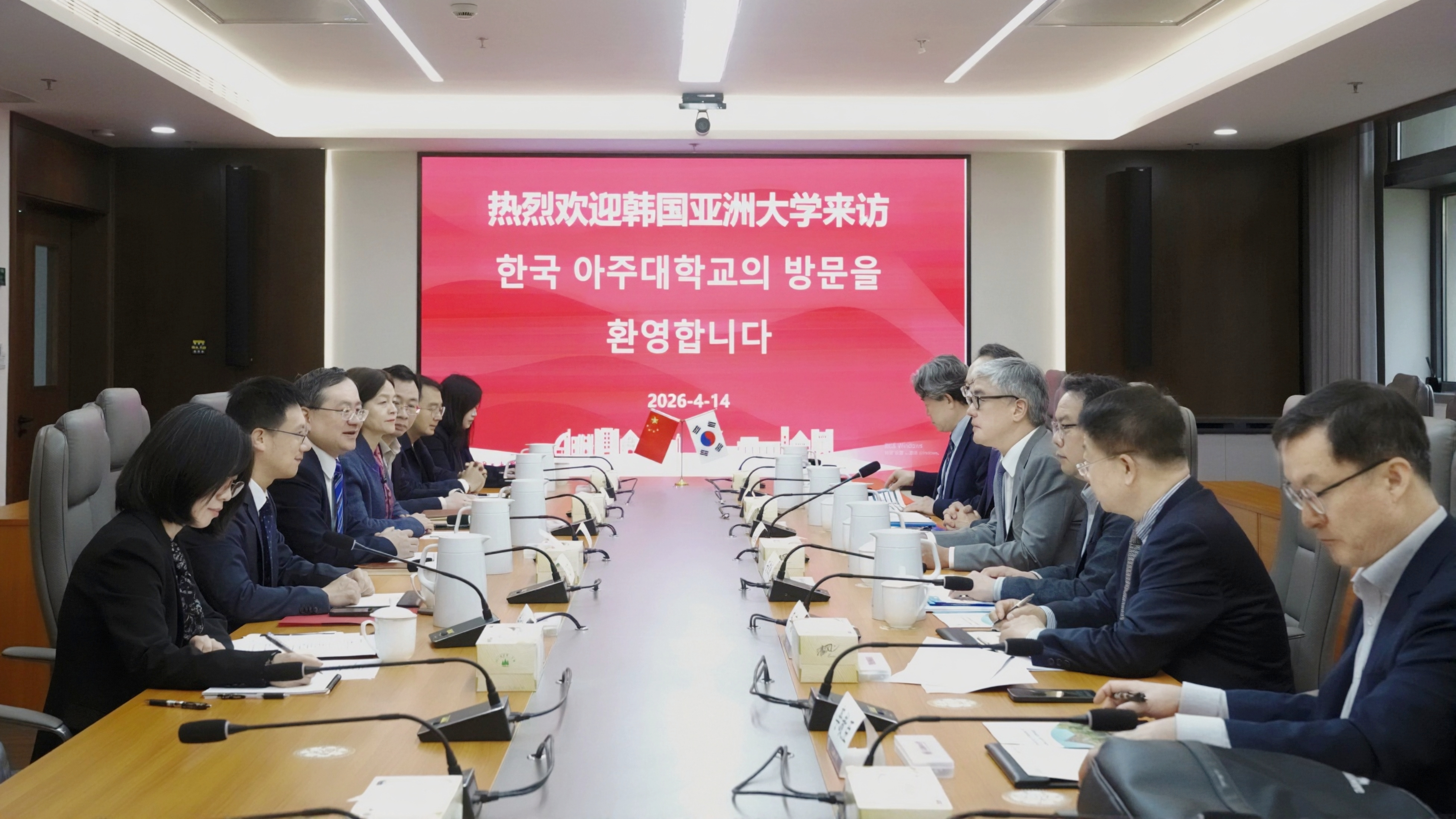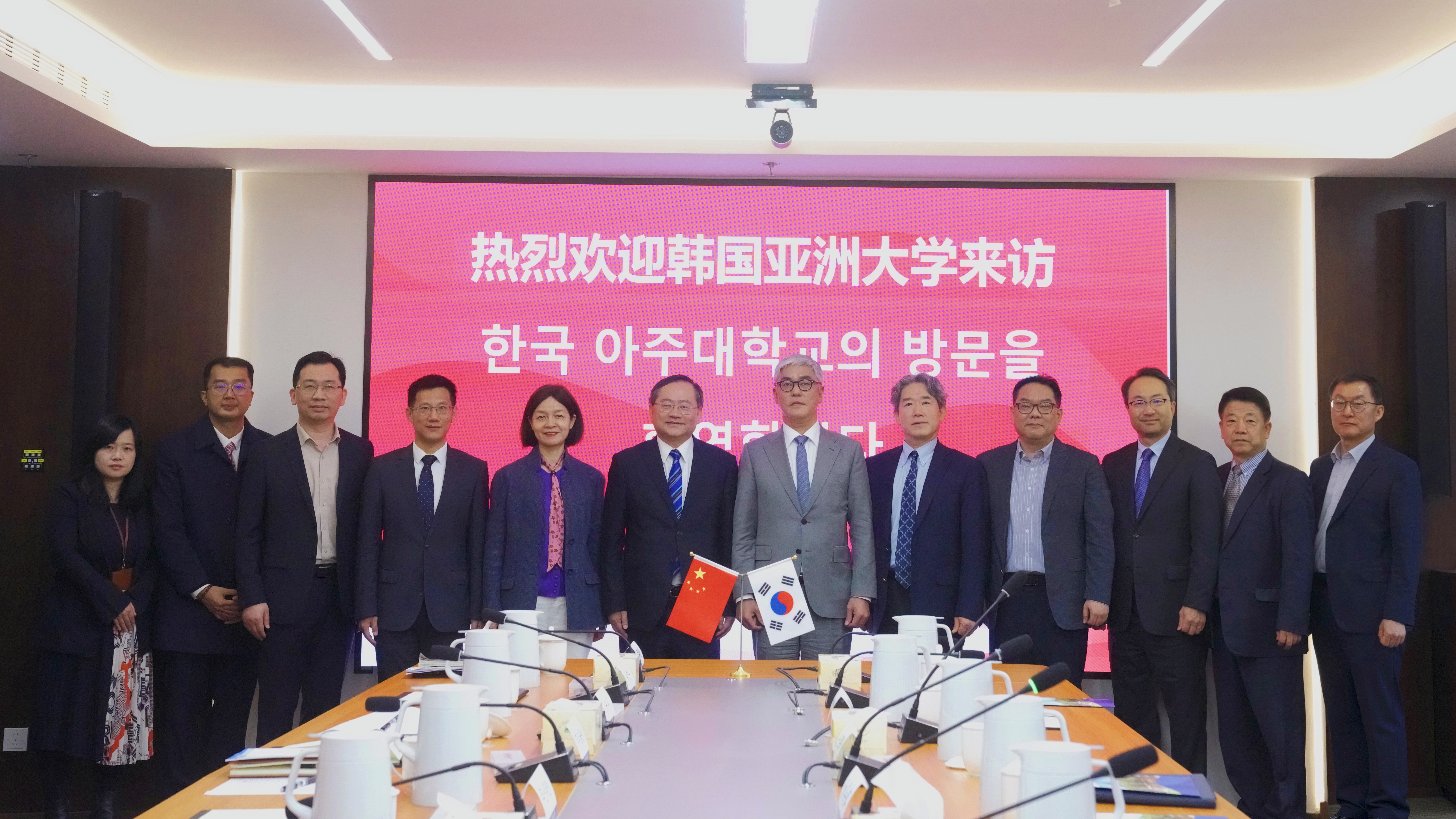 4月14日上午,韩国大宇学院学校法人理事长金善鎔、法人常务理事任宰賢、韩国亚洲大学副校长安秉珉一行6人来访上海理工大学。校长朱新远、副校长蔡永莲会见来宾,国际交流处、健康学院、管理学院相关负责人及教师参加会谈。
