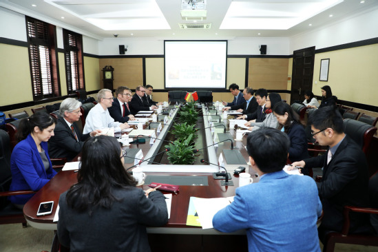 近日,德国汉堡应用技术大学特尔舍尔(Teuscher)校长代表团访问我校。4月2日上午,校长丁晓东会见代表团一行,副校长蔡永莲、国际交流处、中德学院党政负责人参加会谈。 此次访问是特尔舍尔校长继2018年4月以来对我校首次访问后的再次来访。会谈中,丁校长介绍了我校高水平大学建设的整体规划、特色学科的学术成果以及未来发展愿景。双方就上海—汉堡国际工程学院的电气自动化和机械制造两个专业每年招生的进展情况、研究生联合培养计划、德方来华交流生计划和E-learning平台管理及推广等事宜进行了深入探讨。 德国汉堡应用技术大学自1985年起和上海理工大学开展了国际合作交流,是上海市和汉堡市的重要文化交流项目,并从1998年起开始了合作办学项目招生,两校的合作交流是上海理工大学和国外高校合作的重要里程碑。从2004年起,上海—汉堡国际工程学院就对德国专业认证进行了有益的探索,对上海理工大学本土专业的国际化和专业发展起到了很好的辐射作用。