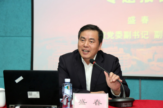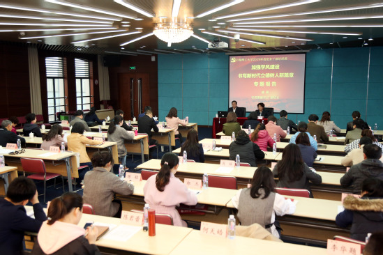 4月4日下午,2019年度学校党务干部培训班第二次专题授课在图文信息中心第一会议室举行。校党委副书记、副校长盛春为全体学员作专题辅导报告。离退休党支部书记、特邀党建组织员,各学院分管学生工作负责人、学院党校辅导员、专职组织员等60余人与会。会议由校党委常委、组织部长孙红主持。 盛春从学习和解读全国思政理论课教师座谈会精神和上海市教育大会精神入手,围绕立德树人根本任务,着重讲解了学风建设与立德树人工作的关系。具体分析了学校近几年学风建设的总体情况,从就业升学、学习绩点、学习态度、学习动力、学习途径、满意度等观测点,全面分析了学校学风总体情况,在此基础上提出加强学校学风建设的四点要求:一要坚决落实党委提出“以教风带动学风、以学风促进教风”的要求,做到教风与学风齐头并进;二要大力营造乐学、好学、善学的积极氛围,形成以学为荣的价值导向;三要把第一课堂作为改善学风的重要突破口,提高教育教学成效,让学生愿意上课、参与上课,喜欢上课;四要加强家校协同、社校衔接,充分发挥家庭、社会在学生成长成才中的重要作用。最后,盛春提出了进一步抓好学风建设的四大新举措,即以学业发展中心为平台,以理想信念教育为先导,以精准学风建设为理念,以改善学习“六率”为抓手,共同推进学校良好学风的形成。 整场报告数据详实,紧贴学校学风建设工作实际,与每位学员的实际工作息息相关。学员们深受启发,纷纷表示要从自身的管理、教学、服务等工作的点点滴滴做起,为营造良好的学风、建设高水平大学建设做出应有的贡献。