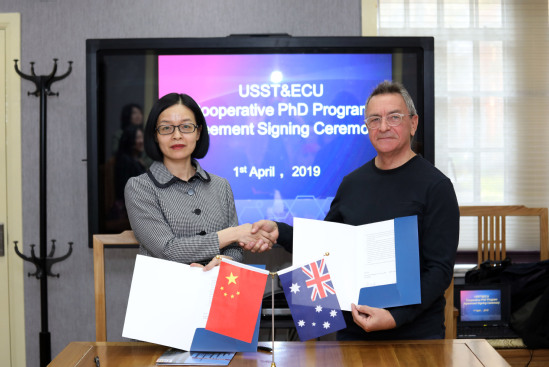 4月1日,澳大利亚埃迪斯·科文大学(ECU)人文与艺术学院院长Clive Barstow教授和博士生导师Lyndall Adams教授访问我校,副校长蔡永莲会见代表团一行,并代表学校与埃迪斯▪科文大学签署了联合培养师资博士项目协议,国际交流处、外语学院和出版印刷与艺术设计学院相关负责人参加了会谈。 蔡永莲副校长对Clive Barstow教授和Lyndall Adams教授的到访表示热列欢迎,并回顾了我校高水平大学建设的成绩和变化,尤其是在国际交流领域取得的长足进步。Clive Barstow教授表示,埃迪斯·科文大学作为上海理工大学的老朋友,见证了上理工的快速发展。在过去的15年里,两校在学术交流、作品展览、学生交流学习等领城已开展了比较深入的合作,此次签署的联合培养师资博士项目协议旨在促进两校科研合作,打造更好的国际科研环境。 会后,Clive Barstow教授一行与外语学院、版艺学院的项目申请者见面,Lyndall Adams教授详细介绍了在埃迪斯·科文大学攻读博士学位的申请、课程以及毕业论文要求等,并热心回答了申请者提出的问题。 我校与埃迪斯·科文大学签署联合培养师资博士项目主要针对我校外语学院和版艺学院在职教师,并每年提供全额学费奖学金和部分学费奖学金名额,申请者可采取“1+2(一年在ECU、两年在USST)”或者“1+3”形式完成埃迪斯·科文大学博士学位学习。