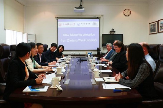 4月17日下午,浙江万里学院副校长马建荣一行对我校中英国际学院进行考察学习并举行座谈会。浙江万里学院教务部部长杨亚萍、商学院院长孟祥霞、外语学院院长莫莉莉、外语学院副院长沈乐敏陪同到访。 座谈会在行政楼会议室举行。中英国际学院执行院长Laura Bishop,语言、教育与文化学院主任、高级讲师Gordon Callan,工商管理专业项目负责人、高级讲师Andy Ritchie,会展经济与管理专业项目负责人、高级讲师Tony Ryan,教务部主任汤逾玲出席座谈会。 学院执行院长Laura Bishop致欢迎辞,她代表学院对浙江万里学院副校长马建荣一行的来访表示热烈欢迎,并简要介绍了学院发展历程、办学理念、专业设置、校企合作等方面的概况。 马建荣副校长认真听完介绍后,对中英国际学院中外合作办学项目的优秀成果表示了赞赏,同时简要介绍了浙江万里学院的历史沿革、办学模式和学生情况等。随后,双方在国际化人才培养、引进国外高校优质师资等问题进行了交流,并就如何与世界一流高校开展中外合作办学展开了深入讨论。座谈会上,浙江万里学院代表团还与学院各专业负责人围绕人才培养、课程设置、教学管理、学科竞赛等方面进行了交流和探讨。 座谈会结束后,马建荣副校长一行在学院相关部门负责人的陪同下,参观了学生发展中心和学生社团代表——“Actor易创社团”,并与师生们进行了亲切交流。 浙江万里学院代表团对学院优越的国际化办学资源和优美的校园环境给予高度赞赏。马建荣副校长表示,希望以此次来访为契机,双方院校在未来人才联合培养、科研创新、师资互访共享、学科建设、对外交流与合作等多方面推进深度合作,拓宽合作领域,实现优势互补和资源共享。