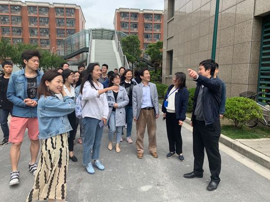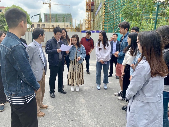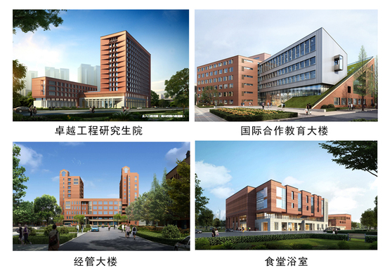 校领导向学生展示南校区新建一期工程中的食堂大楼