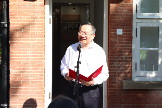 王凌宇在致辞中指出,雷洁琼先生是我国著名的社会学家、法学家、教育家、杰出的社会活动家,上海理工大学与雷先生有着深厚的历史渊源,学校的前身沪江大学是雷先生青年时期投身教育事业和爱国民主运动的重要阵地。雷先生一直关心上海理工大学的发展,1997年为学校题词“提高教育质量,培育理工人才”,对学校师生提出殷切希望。为了更好地传承先生精神,纪念先生诞辰120周年,“雷洁琼生平事迹展”迁址至学校沪江国际文化园区新建落成,不仅是对先生的深切缅怀,更是为我们搭建了一座传承精神的桥梁。未来,我们将以先生的教育理念和家国情怀为指引,深耕理工特色,提升教育质量,努力培养更多能担当民族复兴大任的时代新人,不辜负先生的殷切期望。 杨蓉代表民进上海市委对展览开展表示祝贺。她表示雷洁琼是民进会员敬仰的前辈,也是上海理工大学的杰出校友,她的一生始终与国家民族的前途命运紧密相连。民进上海市委和上海理工大学共同推动建设展览缅怀雷洁琼,新展以鲜明的“上海印记”和“上理特色”还原了雷老在上海的奋斗历程以及与上理工的深厚渊源,我们将以此为新的起点,继续深化合作,充分发挥会史教育基地和爱国主义教育基地的重要作用,为传承优良传统、推动多党合作事业蓬勃发展,作出新的更大贡献。 开展仪式上,高友东与王凌宇共同为雷洁琼生平事迹展“中国民主促进会会史教育基地”揭牌。开展仪式后,蔡达峰与民进上海理工大学委员会进行了座谈交流,学校党委统战部部长孙红参加座谈会并汇报学校及统战工作主要情况。