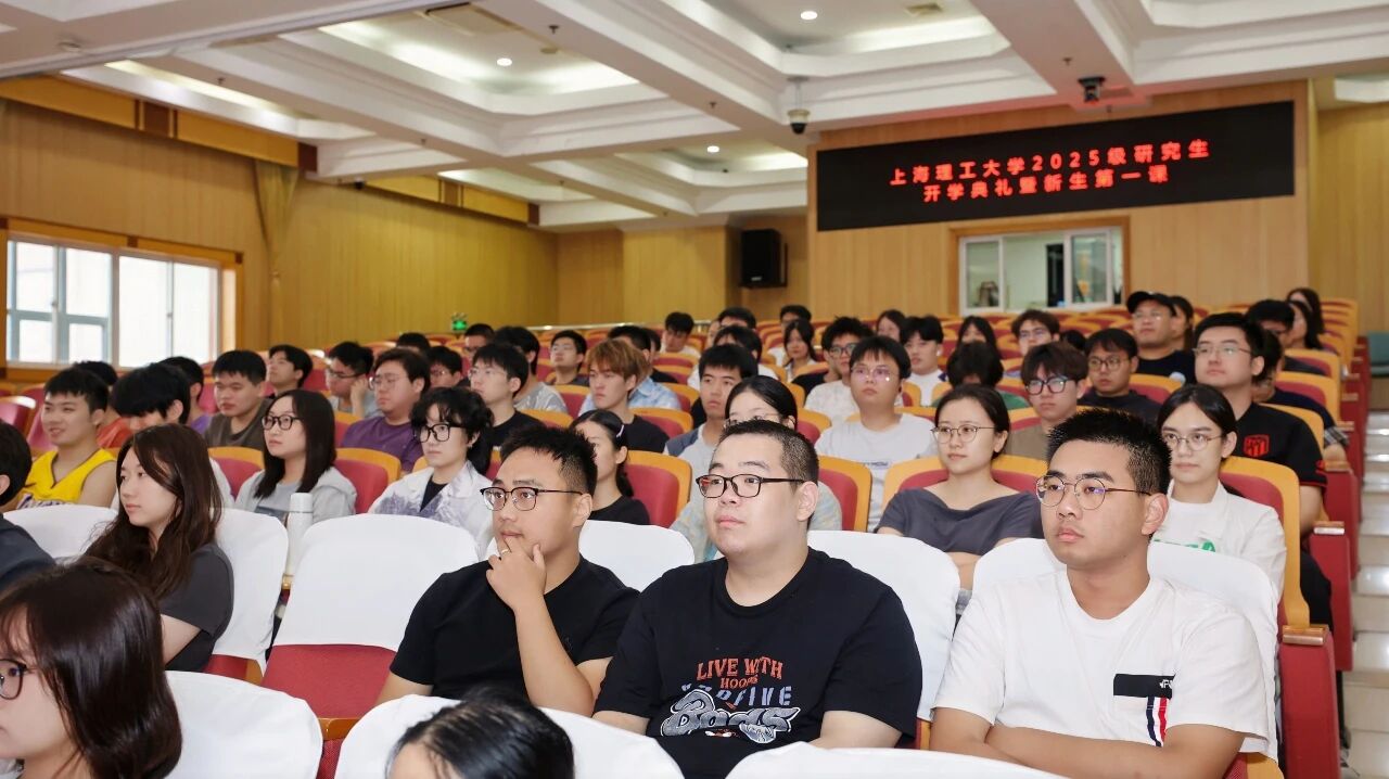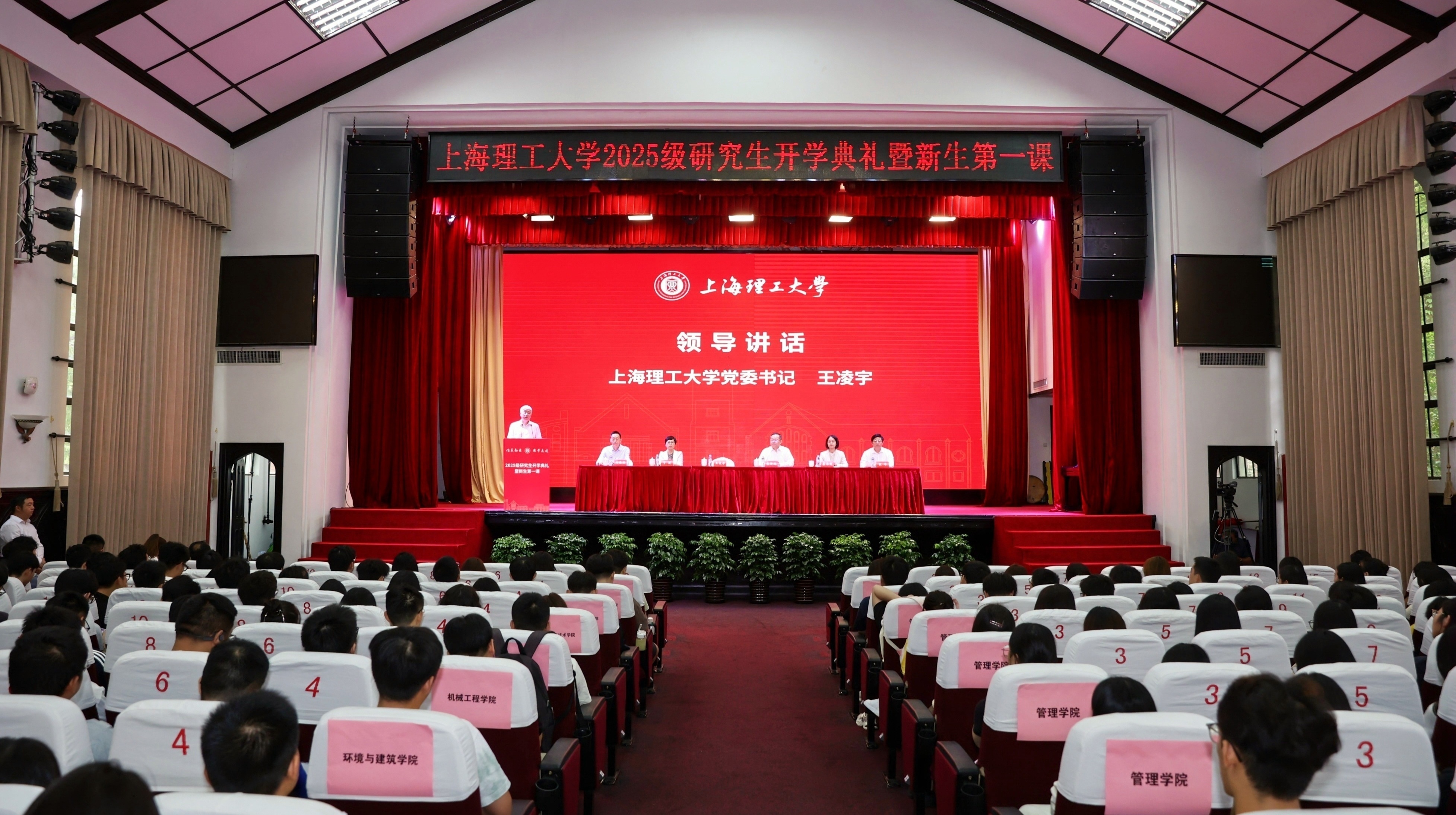 9月18日,上海理工大学2025级研究生开学典礼暨新生第一课在学校大礼堂举行,本次开学典礼采取主分会场及线上线下相结合的方式进行,来自全国各地的4200余名研究生新生跨越山海相聚于此,共赴充满无限可能的新征程。校党委书记王凌宇,校长朱新远,校党委副书记贺莉,校党委副书记、纪委书记赵宁,校党委副书记、副校长刘德强,副校长蔡永莲,总会计师赵明,副校长张华,副校长张众,副校长岳海洋,各职能部处负责人、各学院负责人,导师代表,研究生辅导员,研究生教学秘书,研究生院及研工部全体工作人员出席活动,刘德强主持开学典礼。 开学典礼现场 王凌宇寄语新生:百廿理工传薪火,逐梦强国启新篇 王凌宇寄语全体研究生新生,他对新同学的到来表示热烈欢迎,同时勉励全体新生心怀“工业强国”的理想抱负,做与国家所需、城市发展同频共振的“新上理人”。一要传承红色基因,胸怀家国天下,将个人成长融入国家发展和民族复兴的伟业中;二要传承工程基因,服务国家战略,在研究真问题中推动更多高水平科研成果转化为现实生产力;三要传承创新基因,勇于开拓创新,在交叉合作中激发创新活力,追求卓越境界。希望同学们在上理工珍惜韶华,不负热爱,研有所获,行有所成,努力成长为具有家国之情、实践之能和创新之识的卓越人才,让青春在上海理工大学绽放更加美丽的光彩。 王凌宇讲话 朱新远讲授新生第一课:赓续红色血脉,勇担时代使命 朱新远为新生们讲授第一课。朱校长以“赓续红色血脉,勇担时代使命”为题,详细阐述了学校的发展历史,办学中的红色血脉。他以自身的科研故事为例,鼓励新生们怀爱国之心、立报国之志、增强国之能。接着他向新生们介绍了学校的研究生教育概况,强调要培养“卓越工程创新人才” ,重服务强贡献,打造上海市“3+6”产业体系的中坚力量。最后,他从人才队伍建设、产教融合实践、研究生激励计划等方面分享学校的办学理念和办学优势,鼓励新生们牢记“信义勤爱 思学志远”的校训精神,秉承“改革引领发展,开放赋能未来”的智慧,以青春之我书写上海理工大学新的辉煌篇章,为以中国式现代化全面推进强国建设、民族复兴伟业贡献力量! 朱新远为新生们讲授第一课 师生代表发言:潮启上理,从“新”出发 典礼现场,全体师生共同观看了研究生风采短片《潮起上理,从“新”出发——开场》。短片向大家展现了校园的整体风貌,积极向上的科研学术氛围,丰富多彩的校园文化,在历史与现代的交融中,上理学子们昂扬向上、孜孜以求的精神面貌感染着现场每一位新同学。此时,同学们无不感到自己身处于一片广阔的天地。