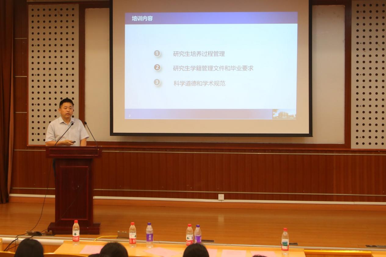 开学典礼在庄严的国歌声中拉开帷幕。副校长张众代表学校向新生致以热烈欢迎和祝贺。在以题为“踏实科研路,求真务实心”的寄语中,他精辟而深刻地指出:第一,要立鸿鹄之志,勇于挑战科学前沿;第二,要恪守学术道德,坚守求真务实的科学精神;第三,要注重交叉融合,在协作中开拓创新。他鼓励同学们始终保持理性思辨与实证精神,不畏艰难、实事求是,用严谨的实验和缜密的逻辑直面挑战。