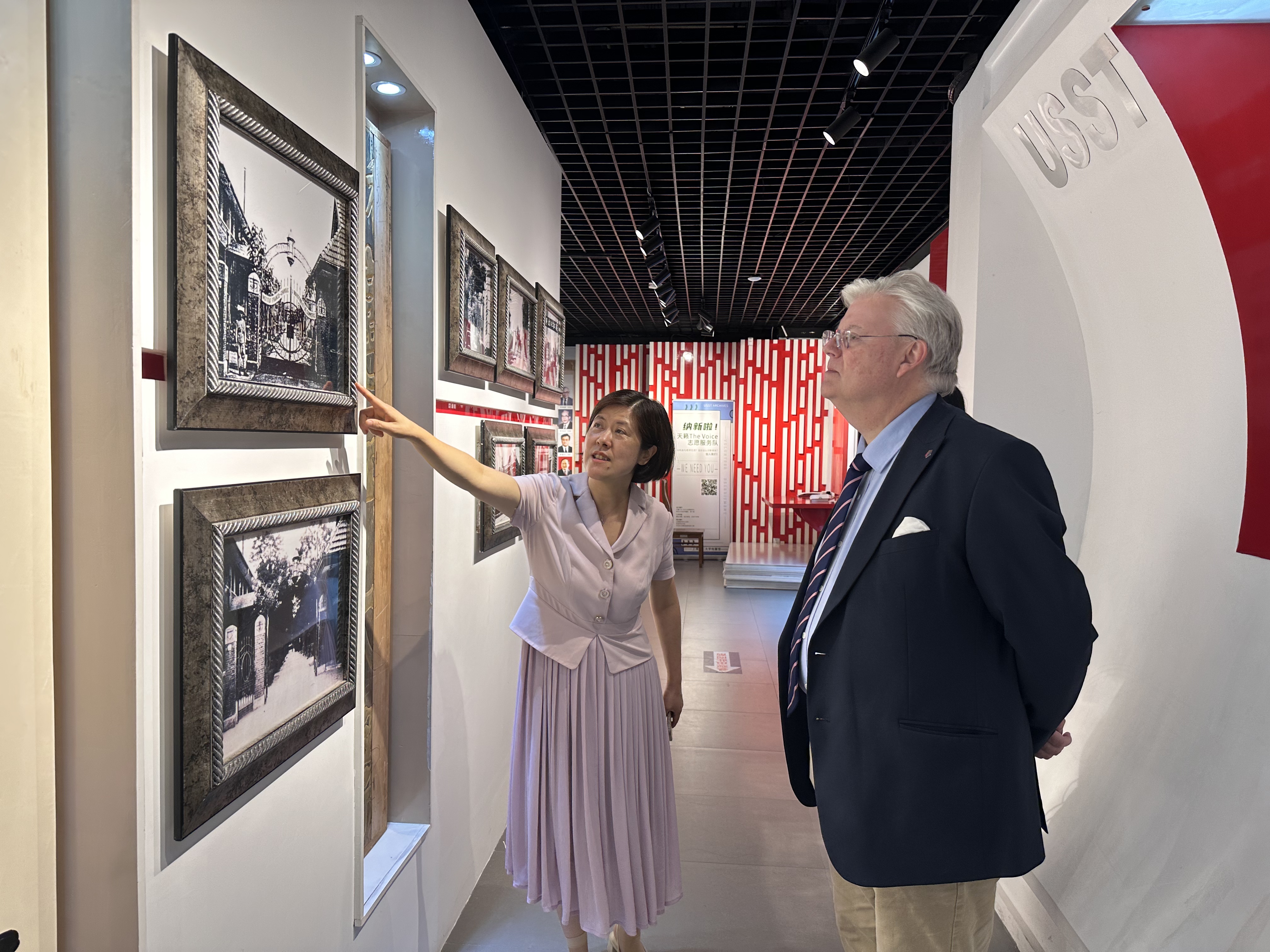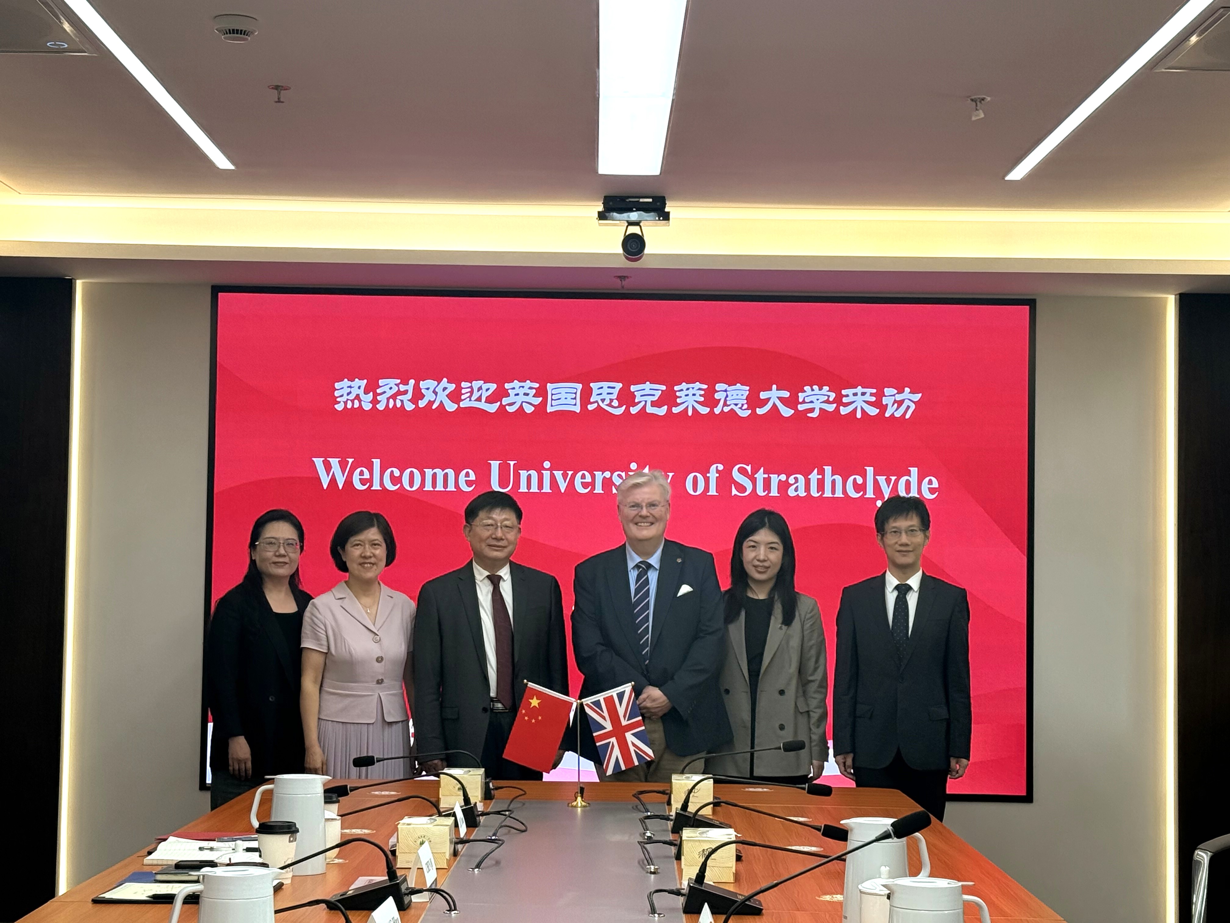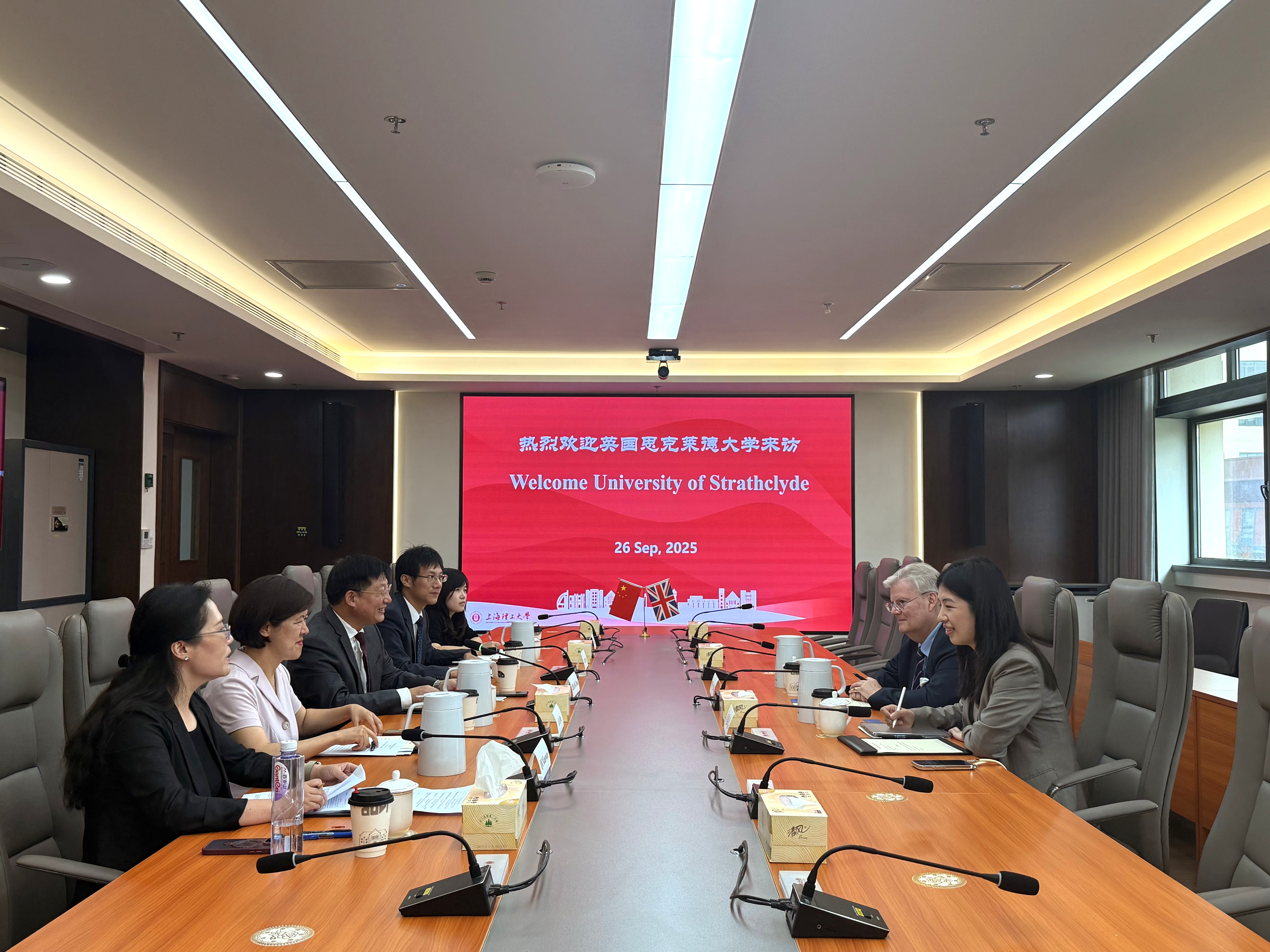 9月26日下午,英国思克莱德大学副校长伊恩·里弗斯(Ian Rivers)一行访问我校。副校长张华接待了来宾,国际交流处和外语学院等相关部门负责人陪同参会。 张华对思克莱德大学代表团的到访表示热烈欢迎,并简要介绍了学校的发展历程与学科优势。他指出,中英两国在教育和科技创新领域始终保持着紧密的合作关系,两校也在人才培养与学术交流方面开展了富有成效的合作。他表示,上理工高度重视与思克莱德大学的战略伙伴关系,期待以此次访问为契机,进一步深化双方在双学位项目、科研创新等领域的务实合作,推动两校合作迈上新台阶,为中英高等教育合作注入新的内涵与活力。 伊恩·里弗斯对学校的热情接待表示感谢,并介绍了思克莱德大学的办学特色与国际化战略。他表示,思克莱德大学长期关注与中国高校的合作机遇,希望未来双方能在人文学科深入合作的同时,开展理工科相关领域合作,共同探索跨学科创新路径。 会后,代表团一行参观了校史馆与校园,并应邀赴外语学院开展学术讲座。