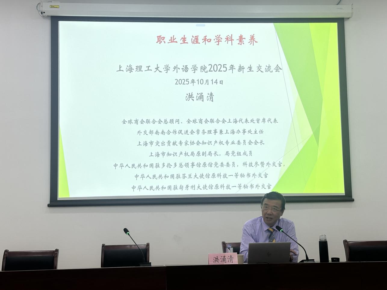 10月14日下午,外语学院举办职业生涯教育专题讲座,特邀外语学院校友理事会会长、上海市知识产权局原副局长洪涌清先生主讲。本次讲座也是外语学院针对大一新生开设的《职业生涯与学科素养》必修课程的其中一讲,讲座由外语学院学业发展中心指导老师苏予燕主持,全体大一新生、高年级本科生及研究生代表参加。 洪涌清校友以自身“从青年学子到文化使者”的成长轨迹为脉络,结合多年的外交官工作经历,生动形象地阐述了“职业生涯”和“学科素养”之间的关系,并对学生们未来将要面对的机遇和挑战提出了中肯的建议。他希望同学们能够坚定共产主义信念,将个人成长与国家话语权建设紧密结合,以外语为工具深挖中华文化内核,构建“双语思维”核心竞争力,在国际事务中传递中国声音。在问答环节,学生们就“外语专业的多元化发展路径”“国际组织实习机会获取”等问题踊跃提问。洪涌清校友结合自身经历,给出了切实可行的建议,现场气氛活跃,掌声不断。 本次讲座也是外语学院深入贯彻习近平总书记关于“加强国际传播能力建设”重要指示,深化立德树人机制综合改革的实践举措。讲座凸显外语学院“为党育人、为国育才”的办学导向,将职业规划升华为“人生战略规划”,建立“语言能力+领域专长+国际视野”三维培养模式,以“全球胜任力”重塑评价标准,培育兼具专业深度与政治素养的复合型人才。 洪涌清作职业生涯教育讲座 讲座现场 【相关】 洪涌清校友简介:上海理工大学外语学院86级研究生校友,上海理工大学外语学院校友理事会会长;全球商会联合会总顾问、全球商会联合会上海代表处首席代表;外交部南南合作促进会常任理事兼上海办事处主任;上海市突出贡献专家协会知识产权专业委员会会长;上海市知识产权局原副局长,局党组成员;我国驻多伦多、芬兰、匈牙利多国大使馆外交官。 供稿单位:外语学院 |