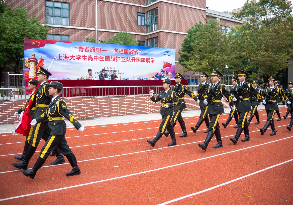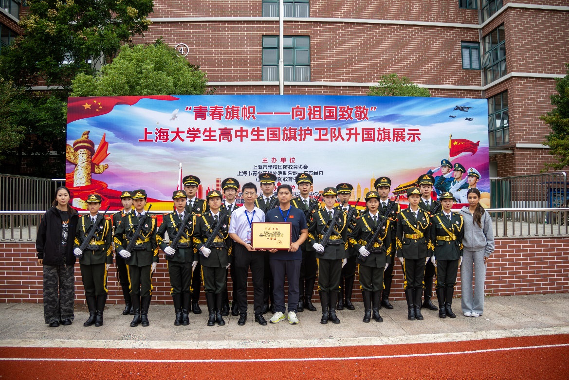 为纪念中国人民抗日战争暨世界反法西斯战争胜利80周年,庆祝中华人民共和国成立76周年,10月18日,由上海市学校国防教育协会、上海市青少年校外活动营地——东方绿舟(上海市国防教育中心)主办,华东理工大学附属闵行科技高级中学、上海市学校国防教育协会高校分会·高中分会·中职分会承办的“上海市大学生高中生国旗护卫队升国旗展示竞赛活动”在闵行科技高级中学校园隆重举行。来自全市的30支高校与中学国旗护卫队齐聚一堂,以庄严的仪式和饱满的精神,呈现了一场别开生面的升旗展示盛会。 本次活动旨在深入开展《国旗法》《国歌法》教育,强化升旗仪式的育人功能,在青年学生中深化社会主义核心价值观与爱国主义教育,推动高校与中学国旗护卫队活动的规范化与常态化,以标准化的升旗礼仪向祖国致敬。比赛按照本科院校组、高职院校组、普通高中组、中职学校组四类分组竞赛,设男女混编组、男子组、女子组等赛制。评分内容涵盖着装仪容、精神面貌、队列行进、动作流程、口令指挥与候场准备六个方面,全面考察队伍的仪式规范与综合素养。 我校武装部朱垌烨、胡子奕老师率领上海理工大学国旗护卫队16名队员参加本次比赛。比赛过程中队员们神情专注、步伐整齐、动作规范、口令铿锵,高质量完成入场、行进、就位、展旗、敬礼等环节,将升旗仪式的庄严与美感展现得淋漓尽致,赢得评委与现场观众一致好评。经过一天紧张而有序的展示,我校国旗护卫队脱颖而出,荣获本科院校混编组一等奖,充分展现了新时代上理青年的青春风采与使命担当。