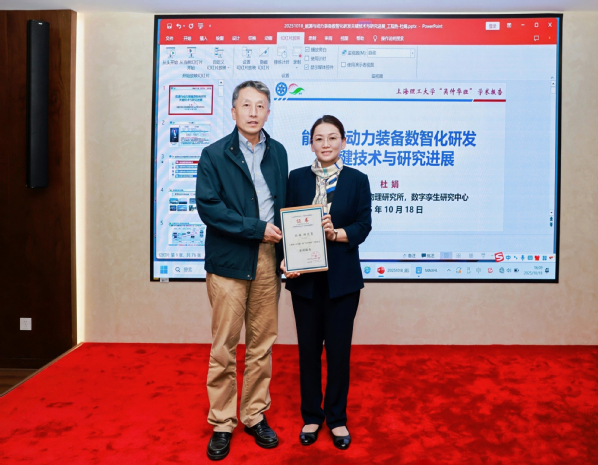 仪式结束后,中国科学院工程热物理研究所数字孪生研究中心主任杜娟研究员以“能源与动力装备数智化研发关键技术与研究进展”为主题作首场学术报告。刘宝林为其颁发首讲报告证书。会后,与会嘉宾共同参观了上海理工大学校史馆,深入了解了学校百年办学脉络与工程教育传统。