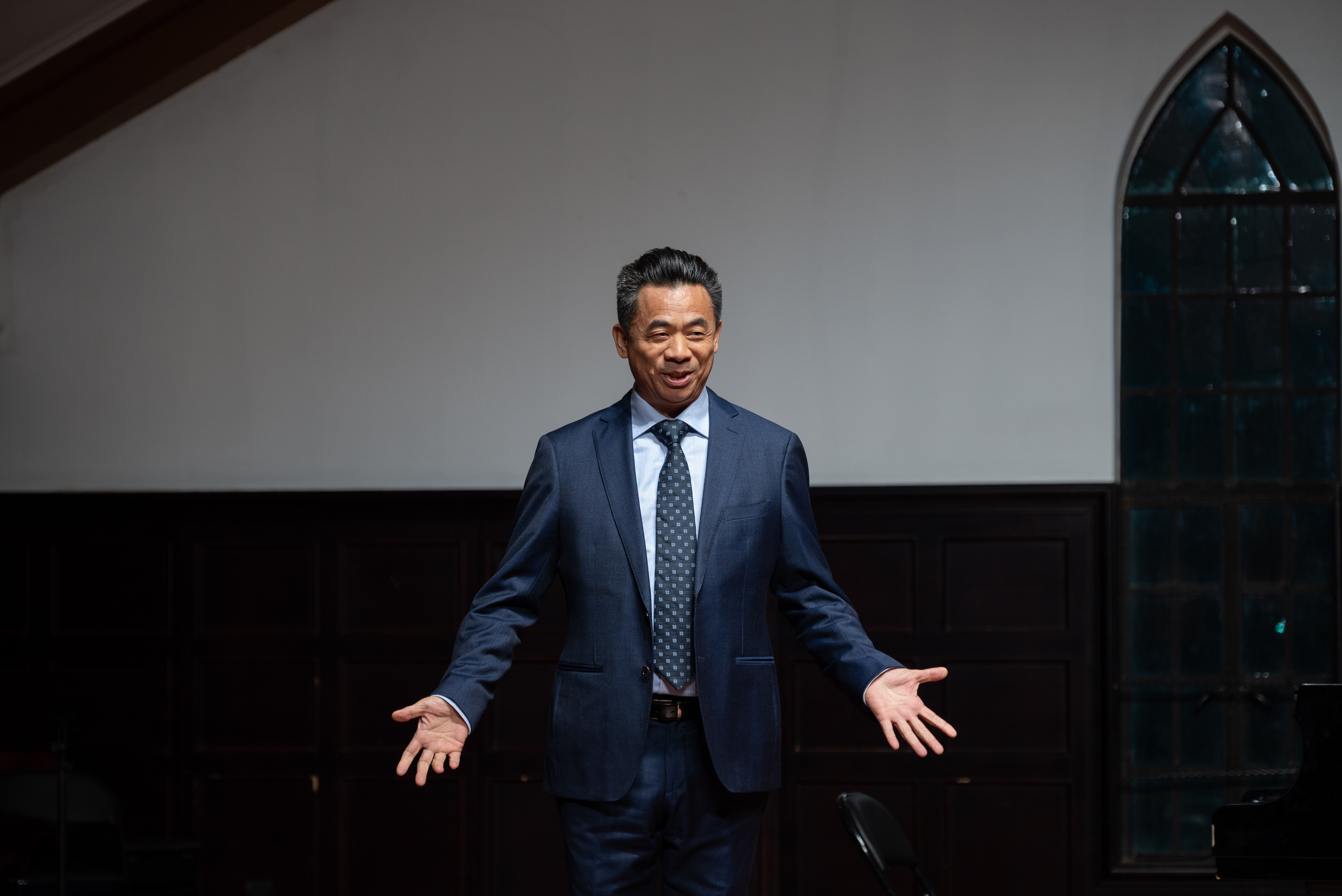 11月28日晚,由上海理工大学国际交流处德国文化交流中心主办的德奥之声音乐会系列:《浪漫的余晖》(艺术歌曲专场)在上海理工大学音乐堂成功举行。旅德钢琴家冯欣欣、女中音歌唱家鲁云斐、男中音歌唱家刘刚与资深导赏李云中联袂登台,为观众呈现一场艺术与思想交融的声乐盛宴。 德国文化交流中心主任周卫东做开场致辞,对艺术家们的到来表示热烈欢迎。他强调,引进该系列高水平艺术活动是学校推进美育教育、促进中外文化交流的重要举措,希望师生通过音乐获得美的启迪,增强文化自信与中外文化交流。