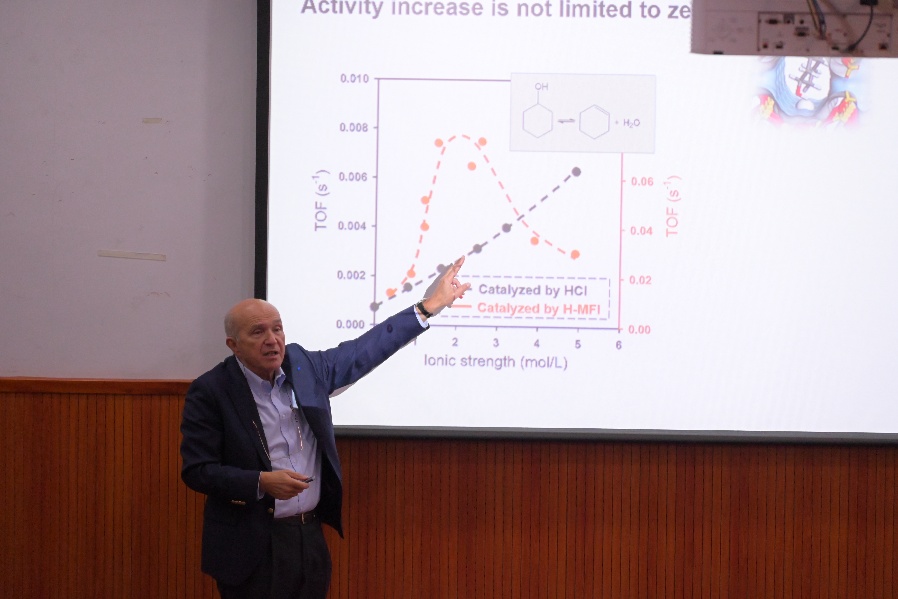 讲座现场 学术交流环节,与会师生围绕限域多孔材料的结构调控、反应路径优化及机理研究等关键科学问题,与Lercher院士展开了深入讨论。Lercher院士对提问进行了详尽而富有启发性的解答,不仅有效回应了师生关切,也进一步激发了大家对催化新材料与反应工程研究的兴趣。 本次活动不仅是催化领域最新进展与深刻洞见学术知识的传递,更是一场创新思维的激发,有力促进了学院科研交流与国际合作水平提升。 【相关】 Johannes Lercher,慕尼黑工业大学教授。1980年获维也纳工业大学博士学位,1982年赴耶鲁大学从事博士后研究工作。在维也纳工业大学任职十年后,他转任荷兰特温特大学化学技术教授。自1998年起,受聘为慕尼黑工业大学化学教授,并于2011年起同时担任美国太平洋西北国家实验室综合催化研究所所长。迄今已发表SCI收录论文500余篇,H指数达117,体现了广泛的学术影响力。他曾担任国际权威期刊《催化杂志》(Journal of Catalysis)主编,并历任国际分子筛协会主席及欧洲催化学会主席。Lercher教授先后当选奥地利科学院院士、美国国家工程院院士和欧洲科学院院士。获重要国际奖项,包括米歇尔·布达尔奖(Michel Boudart Award)、阿尔温·米塔什奖(Alwin Mittasch Prize)及埃尼奖碳氢化合物研究奖(ENI Award)。 供稿单位:材料与化学学院 |